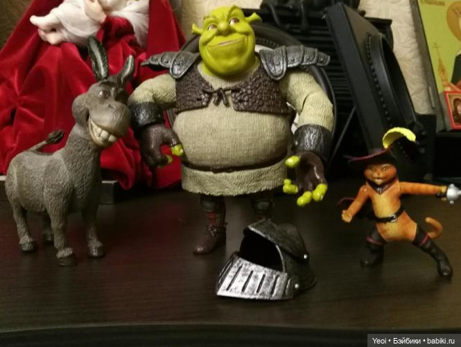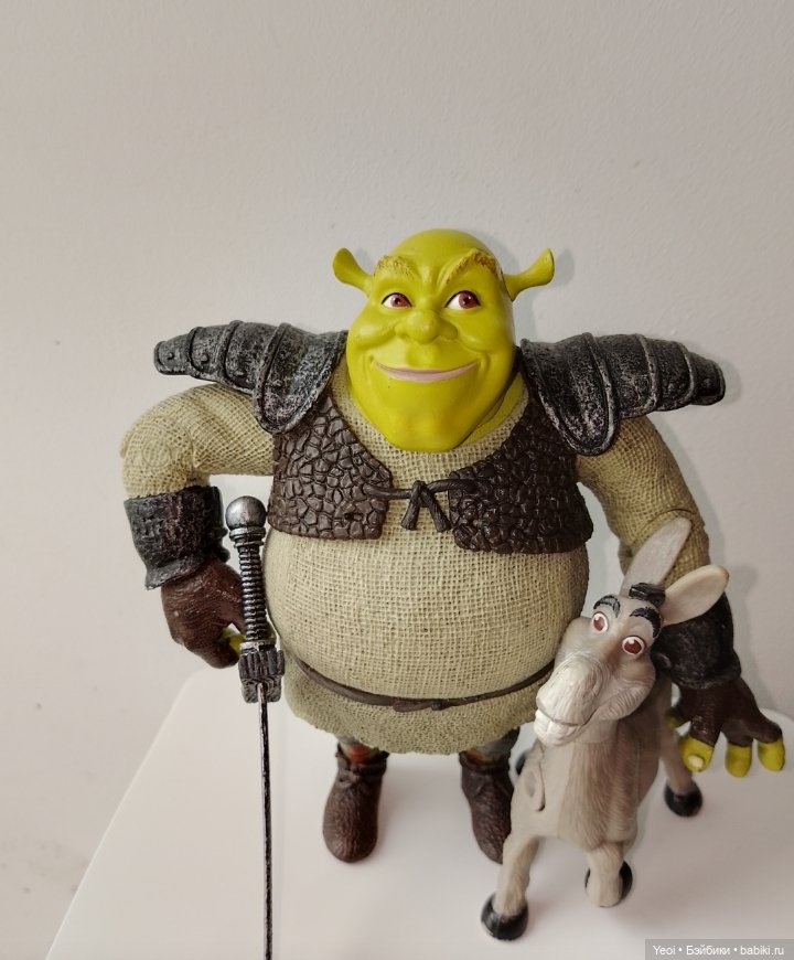 Хочу поделиться фото фигурок Шрека и осла. Только вчера забрала посылочку с почты. В новогодние праздники посмотрели мультфильмы о приключениях этих героев. Ностальгия!). Поискала, какие фигурки Шрека продаются, кроме киндер сюрприза. Нашла и сразу купила.