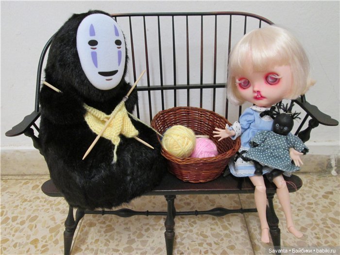 Её дружок -кукла Безликого. И они большие друзья.)))