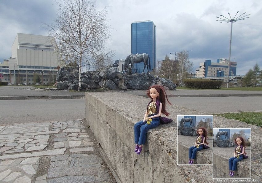В холод народу мало на улице, по этому и игрушки таскаю, а в тёплые денёчки всюду люди. Не люблю при чужом взгляде фотографировать, а мне на этот счёт вечно не везёт. Только найду укромное местечко, только куклу пристрою и бамс!, человек нарисуется… а порой ещё и любопытный… Мне такие всё желание на улице игрушки фотографировать отбили. Раньше я часто с фигурками по городу ходила, мне так нравится фотографировать, верней нравилось, сейчас фотик сломан, рассыпается в руках, и кадры вечно не резкие,