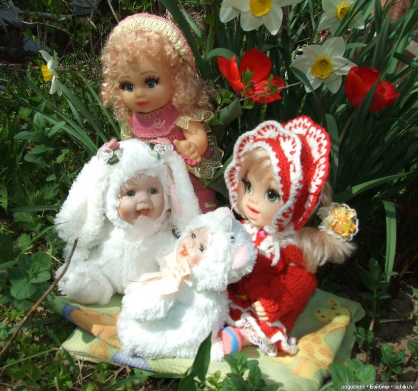 А пока — к вам в гости мои зайчонок и котенок с куклятами поздравляют вас и ваши игрушки — с вербным воскресеньем!