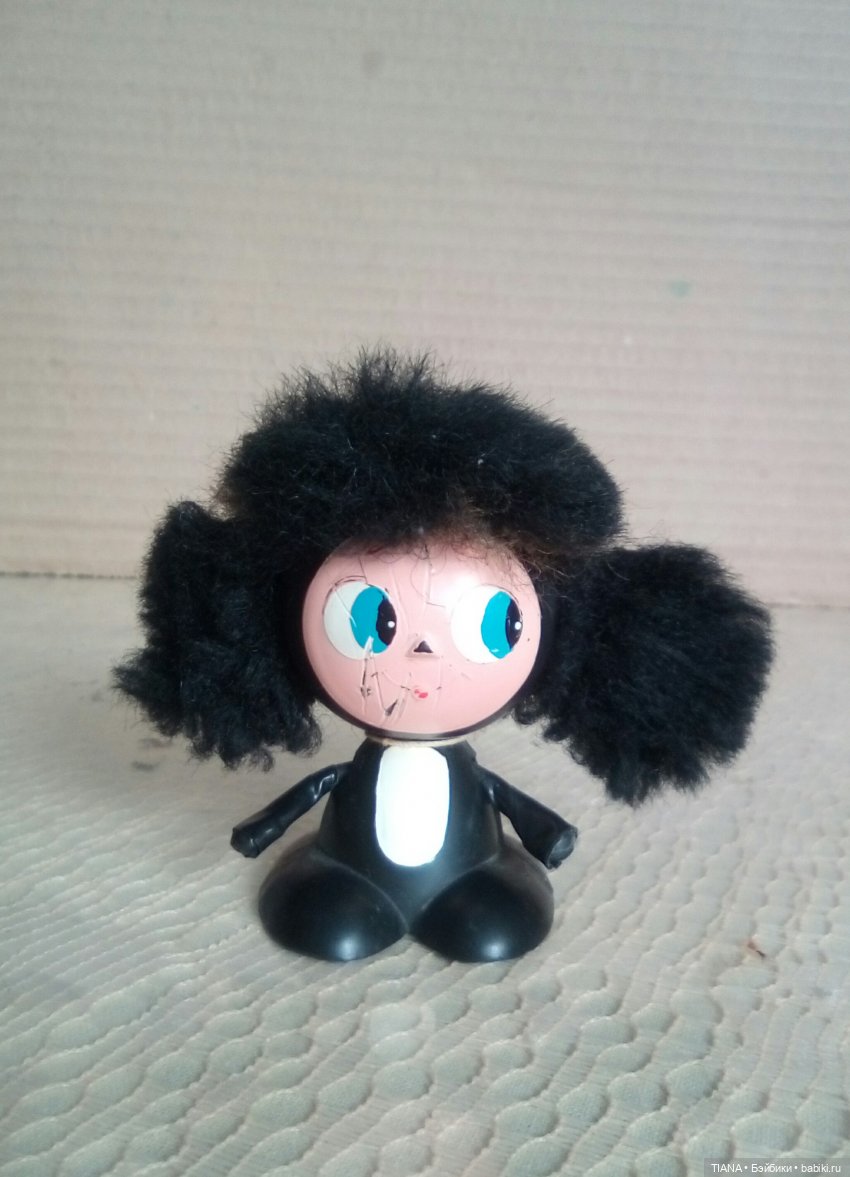 Вот этот самый дорогой. Его мне бабушка в посылке прислала к дню рождения, когда мне лет 10 — 11 было. У него потерялись руки. И я, ещё тогда, сделала из толстой проволоки. Потом потерялась причёска. Я нашла кусочек меха и приклеила. Было такое, что до него добралась кошка. Скинула на пол. А на полу его поджидал щенок. Поэтому у Чебурашки остались царапины. Сейчас он стоит на полочке в компании друзей.