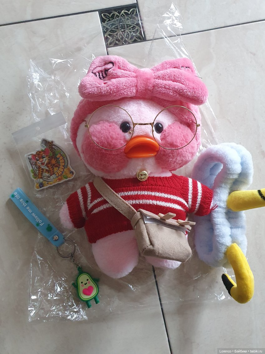 Нет у меня тик-тока, телеграмм и т.д. Возможно, именно поэтому я совсем недавно узнала об уточке Lalafanfan. Когда я её впервые увидела здесь, на Бэйбиках, она меня не впечатлила. Но потом мне понадобилась простая мягкая игрушка, на которую можно создавать одежду (не факт, что я буду её создавать), я вспомнила об этой уточке. Стала искать информацию. На Бэйбиках поста про неё не нашла, только два фото — то, которое увидела в первый раз, и нашла ещё одно фото в комментариях, про вязаную одежду. Зашла на ютуб. Оказалось, что эта уточка давно популярна! Но информации о ней я всё же не смогла найти. Посмотрела несколько видео про оригиналы и подделки. И заказала на одном известном сайте. Первый раз пришла подделка, хотя на фото продавца был изображён оригинал. Отказалась. Заказала у другого продавца, предварительно ознакомившись с многочисленными отзывами и посмотрев фото.