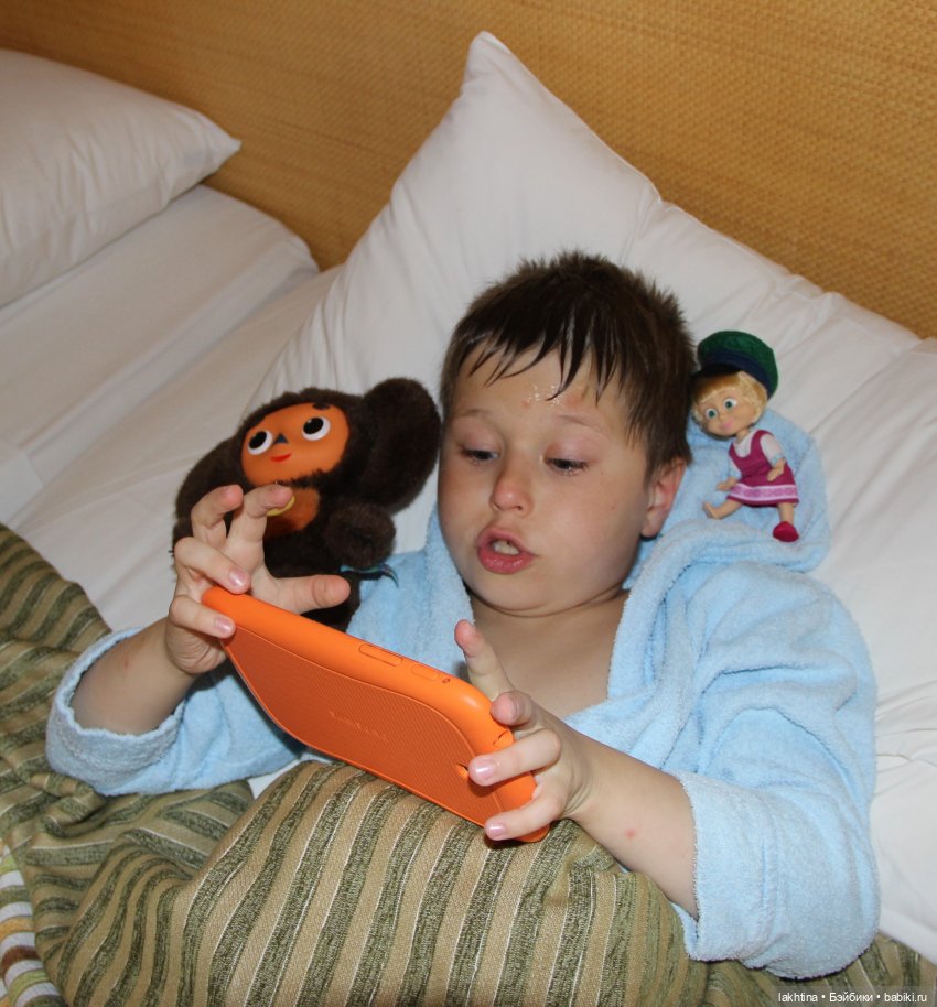 Это в отеле на Крите сынишка читает книжку перед сном Машке и Чебурашке)