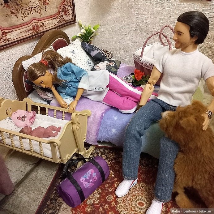 Колыбелька очень «вместительная» — при желании туда может поместиться и куколка формата Еви (12 см), но, на мой взгляд, это уже смотрится совсем не реалистично:). Вот малышам 7-8 см там самое место!)