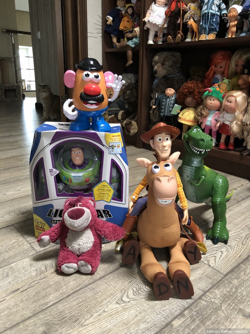 Вуди, Базз Лайтер, динозавр Рекс, конь Булзай — пустили меня по миру. Мистер Картофельная голова и мишка Лоттсо, здесь я немного отдохнула.