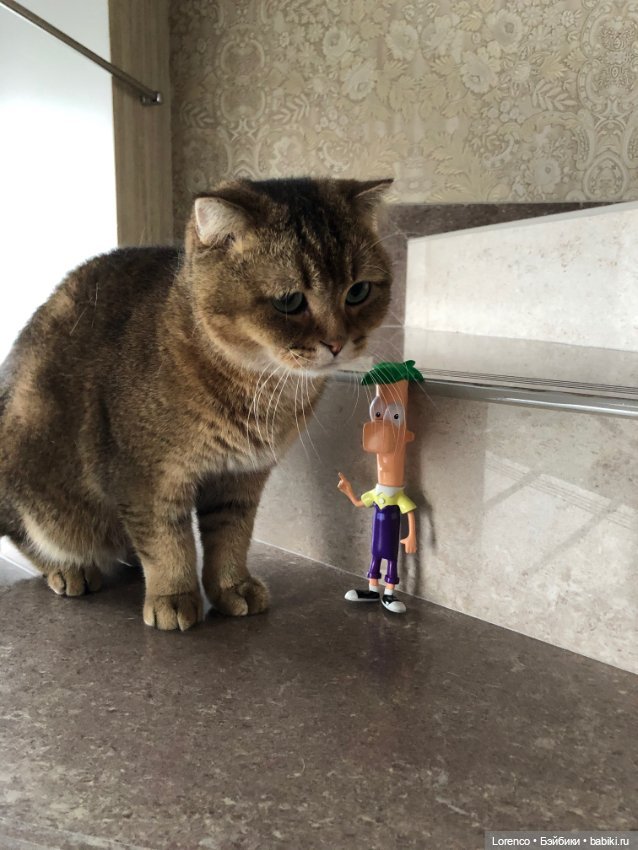 Здравствуйте друзья! Пока была занята делами, увидела интересную картину. Мультяшный Ферб о чем-то шушукался с котом) Интересно, что он ему рассказывал? О каких таких премудростях шла речь?) Судя по выражению Тимофея, разговор был очень серьезный))))) Может Ферб рассказывал Тимоше как надо вести себя долгими, зимними ночами?) Скорее всего, что так. Потому что других претензий к коту не возникало!) Тимка у нас умный парень, полагаю больше подобного не повторится.