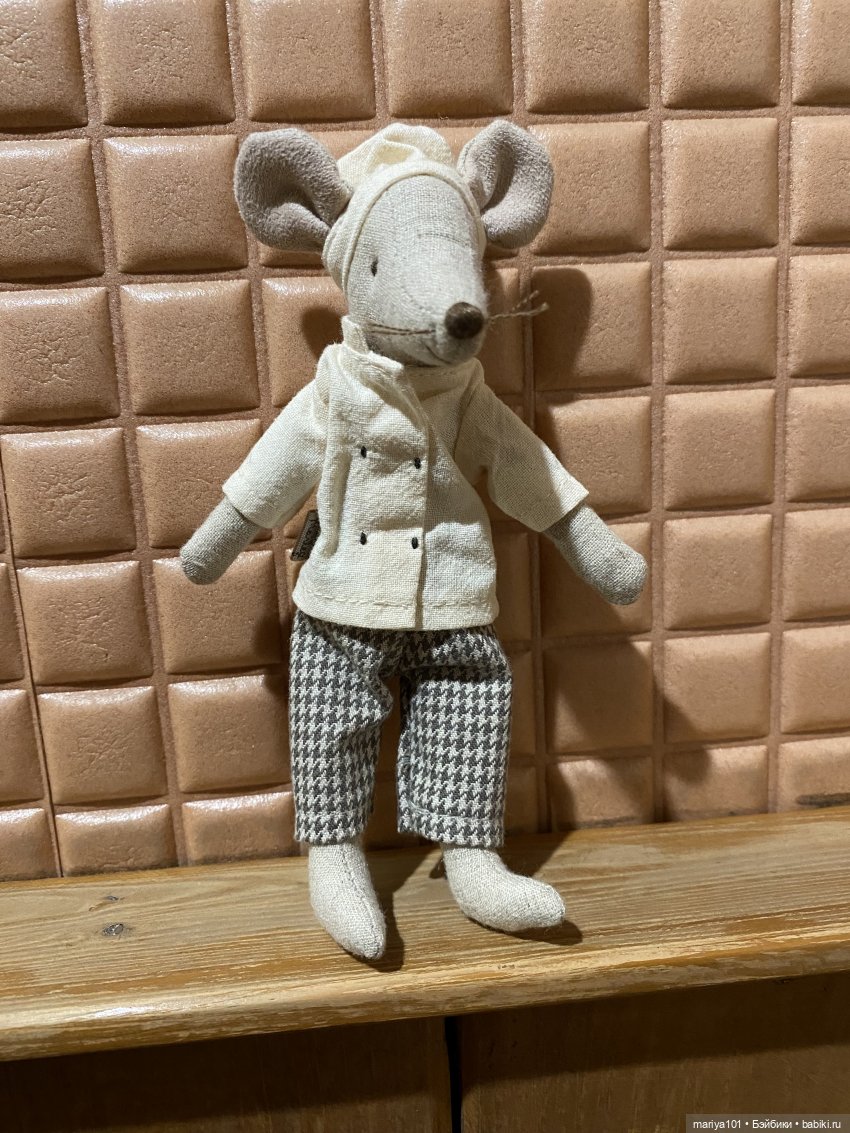 На этих мышей я смотрела ооочень давно. Они часто бывали представлены на небольших предпраздничных ярмарках и в детских магазинчиках высокого ценового сегмента. Останавливал от покупки меня как раз этот самый высокий ценовой сегмент. Вот, вроде, 3-4-5 тыс сумма вполне реальная, но когда смотришь на эту мышу размером с козявку, да так примитивно сшитую, то как-то дебет с кредитом не сходятся) Но в этом году мыши победили моего внутреннего бухгалтера и заселились сразу вдвоем.