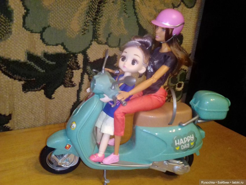 Здравствуйте! Не могу не показать, какой классный мотороллер на Яндексе купила, как настоящий Коробка большая, только пластик картонкой прикрыли и пленкой обмотали, но пришла целая. (а Чонгук пришел в твердой коробке, но упаковка с куклой мятая, такую положили). Мотороллер очень натуральный! Только «ремень безопасности» мешается.И кукла симпатичная. В общем, наснимала его со всех сторон. Парни сразу собрались на пляж ехать, а девчата устроили фотосессию как в автосалоне.