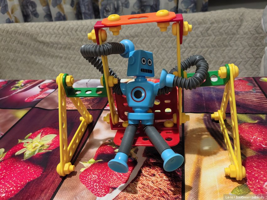 На днях в телефоне ещё его фото нашла — внук увлёкся конструктором, и синий на чём только не покатался — и на мотоцикле, и в кузове машины (но сфоткала только на самой первой модели — качели))