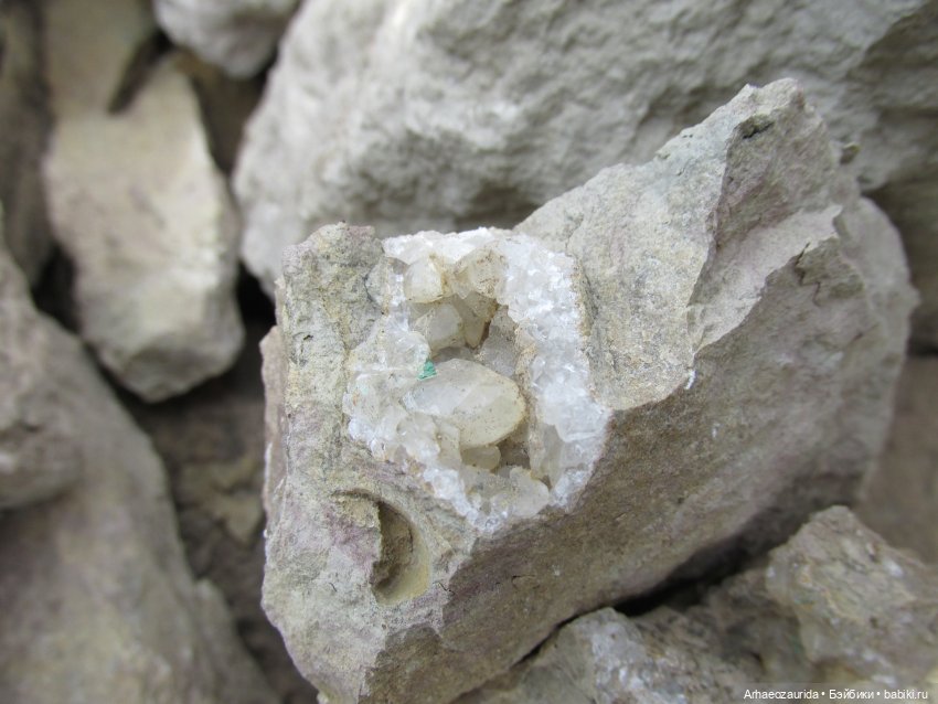 Вот ещё кальцитовые жеоды в придорожных отвалах в Волхове: