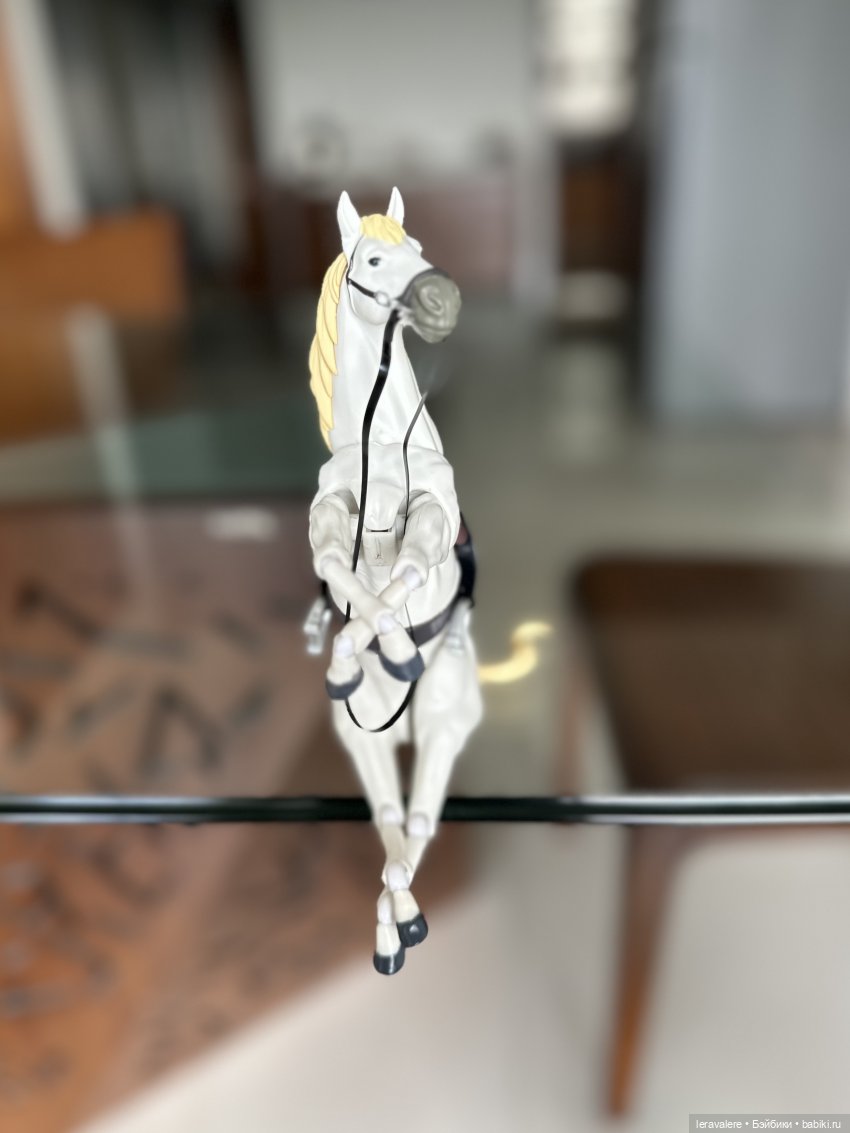 Значит сидел конь и загрустил. Говорит, любимцем меня называешь, а у меня своего то и нет ничего. Ни шляпы, ни пальто, ни ридикюля, ничегошеньки! Я возмутилась, мол, где это видано, коням гардеробы собирать. Но под натиском сдалась, посмотрели, что можно натянуть из закромов) и опять развеселил меня, хохочу, а ему все равно а не то и все не так, не мое это, говорит! -Ну, и на кого я похож?
