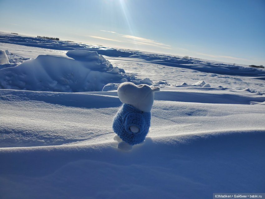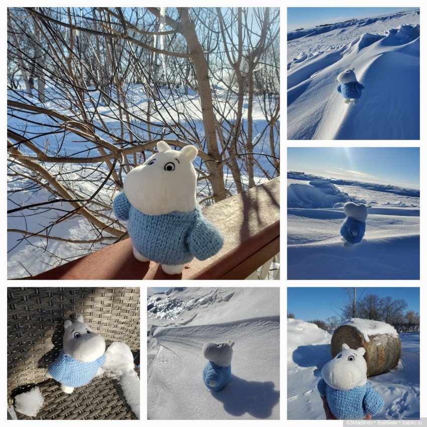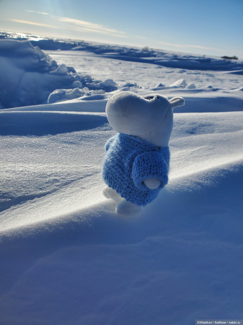 Да, куда хватало глазу, было бело -голубым! Муми-тролль в своём голубом свитере даже сливался со снежными барханами.