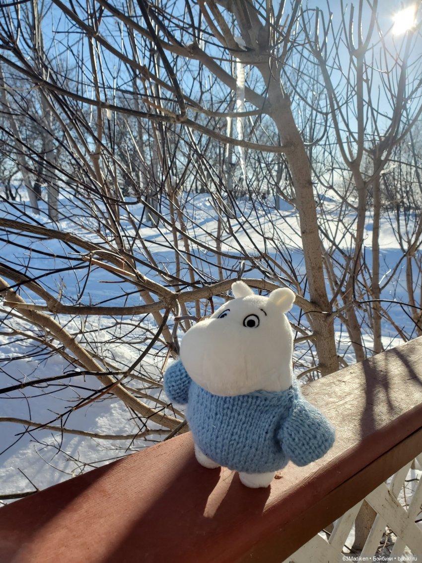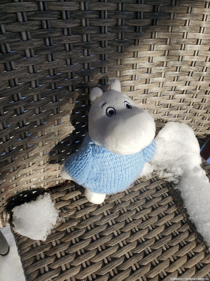 Муми-тролль очаровательный в чудесном свитере! У него ещё будет возможность познакомиться не только с весной, но и с другими временами года, ведь в каждом из них своя прелесть!