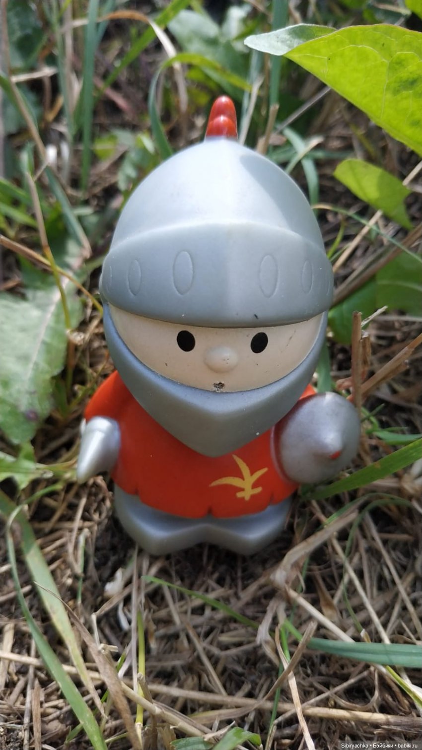 Я отложила все дачные дела и стала рассматривать игрушки. Представляете картину: сидит взрослая тётенька посреди огорода с ящиком старых игрушек и с интересом их рассматривает. Потом я успела поиграть с ними и в песке, и в траве. Мы с мужем даже успели сходить на прогулку в лес с мешком игрушек.