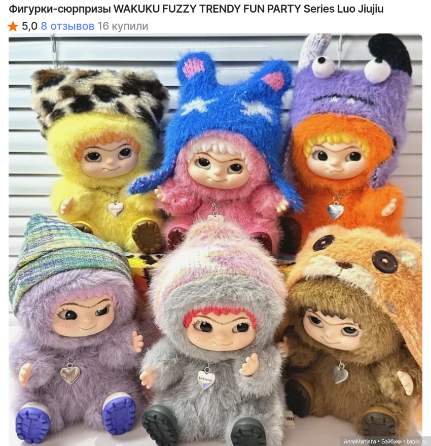 То ли из-за популярности Лабубу появилось множество плюшевых игрушек-брелков с резиновыми мордочками, то ли я просто раньше их не замечала… Но факт остается фактом: если в начале года я скупала фигурки Поп Март и в стиле Поп Март, то сейчас я внезапно начала покупать плюшевые игрушки Блайнд Боксы)) Решила показать вам свою небольшую коллекцию.Начну, пожалуй, с моего Лабубу, купленного еще в декабре 2023 года. Вы его прекрасно знаете, он уже мелькал в топиках.