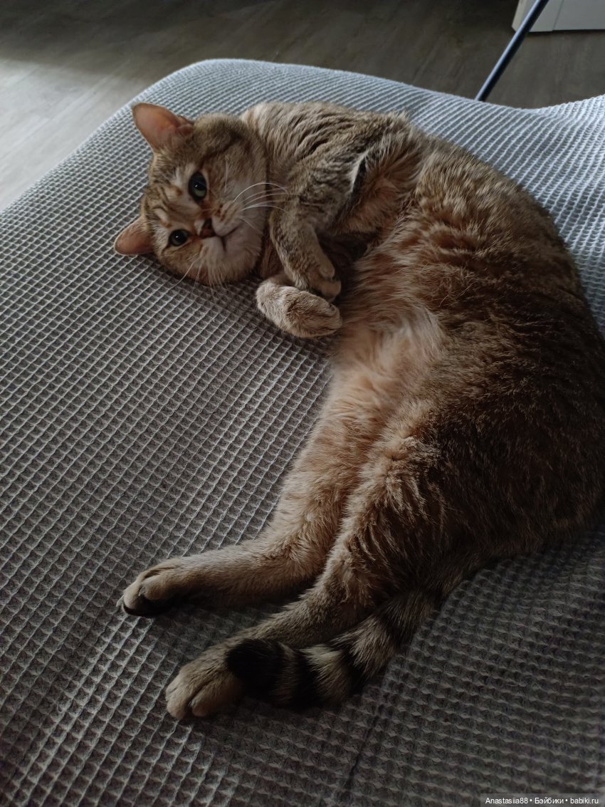 Примерно через два месяца котика уже можно было гладить по животику. Как мне сказали, это признак того, что животное мне доверяет. Спит со мной. В пять утра будит, чтобы покормила, потом снова мы с ним спим (сейчас я в отпуске, поэтому могу себе позволить не вставать рано на работу).