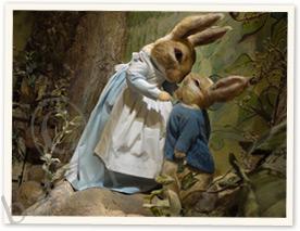Беатриса очень любила животных и изучала их всю жизнь. Когда была маленькой, у неё в детской жили лягушки, мыши, ежиха Ухти-Тухти(1), тритон Исаак Ньютон и даже летучая мышь. Беатриса наблюдала за ними и рисовала. И рисунки её делались все лучше и лучше. К тому времени, когда она стала изображать своих героев одетыми в платья, сюртуки и кафтаны, зверюшки на картинках словно ожили. У Беатрисы было два домашних кролика, которым она посвятила много иллюстраций. Одного из них, Питера Пуша(2), она водила на поводке и брала с собой повсюду, даже в поезд. Она облачила его в голубую курточку и написала о нем свою первую сказку с собственными иллюстрациями — самую известную во всем мире.