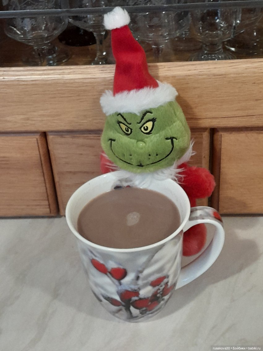 «Сейчас напьюсь какао и пойду спать на полочку, до следующий праздников» — грустно думает маленький Гринчик.