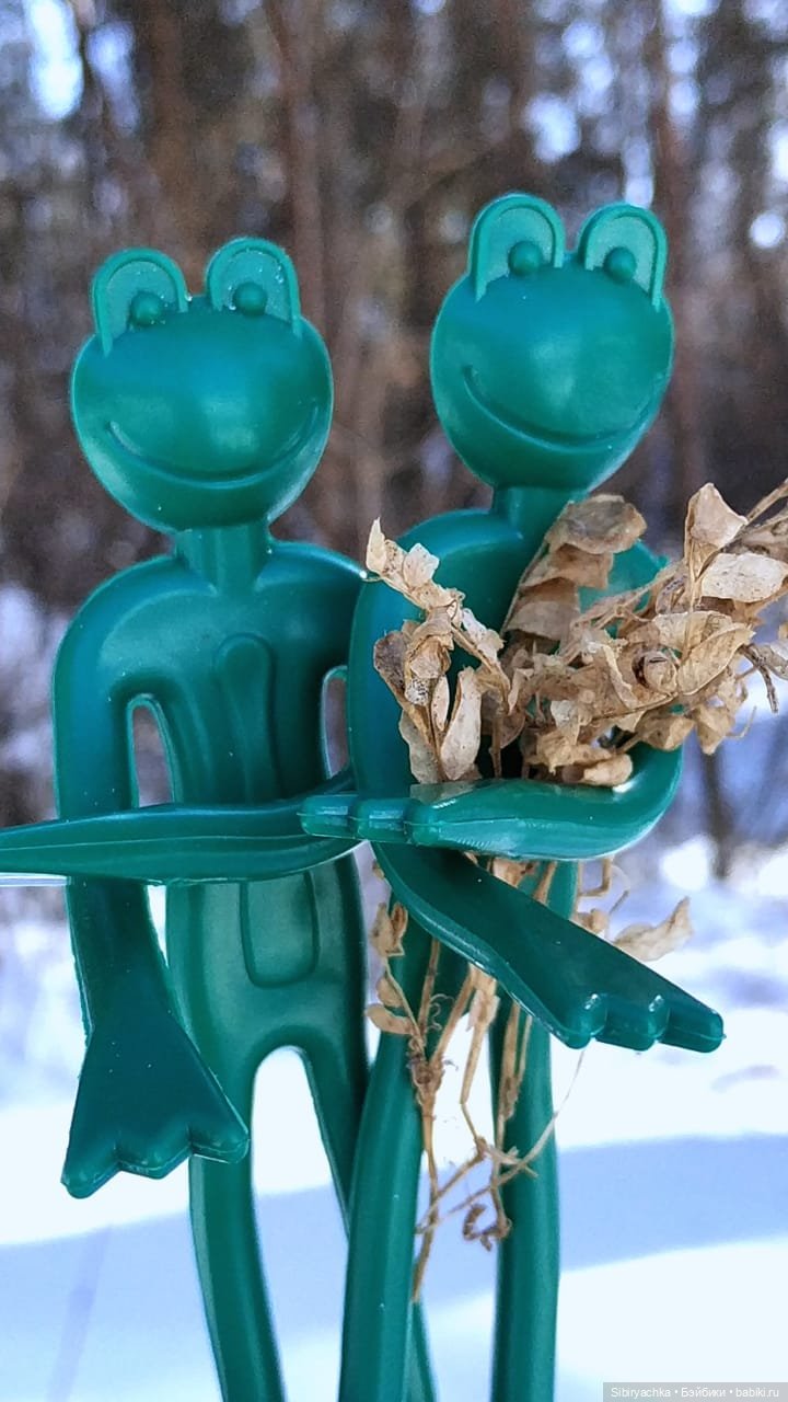 Квак смог составить целый букет из каких-то растений, оставшихся с осени.