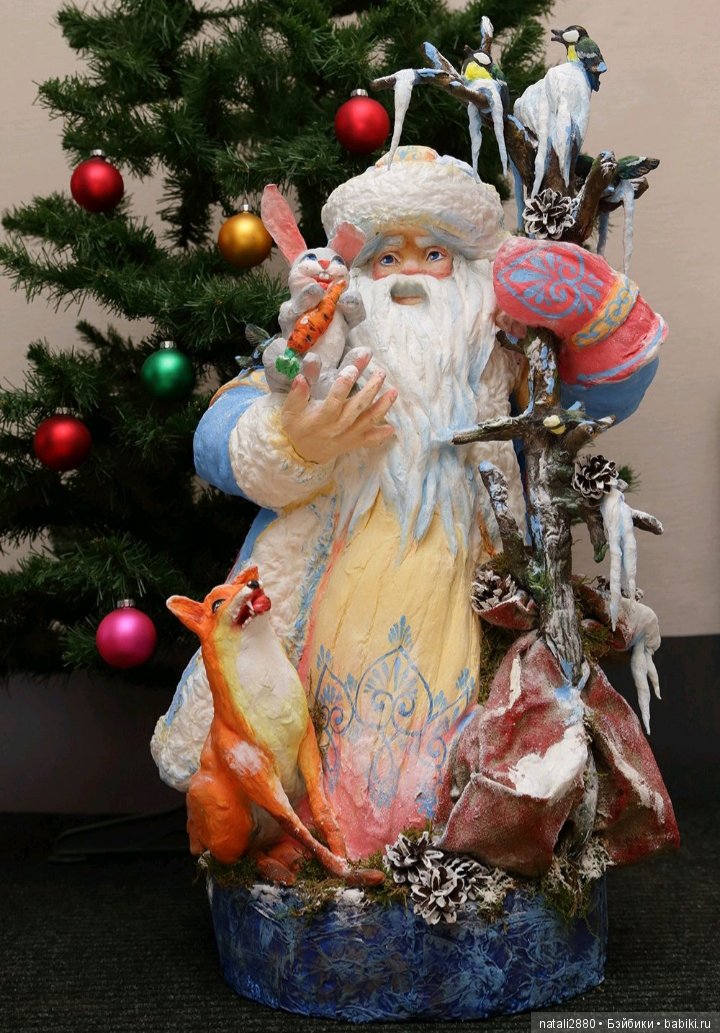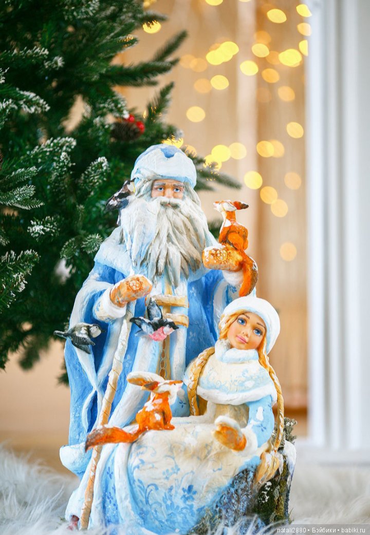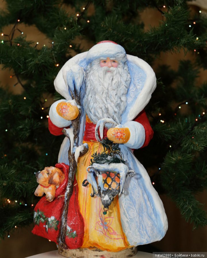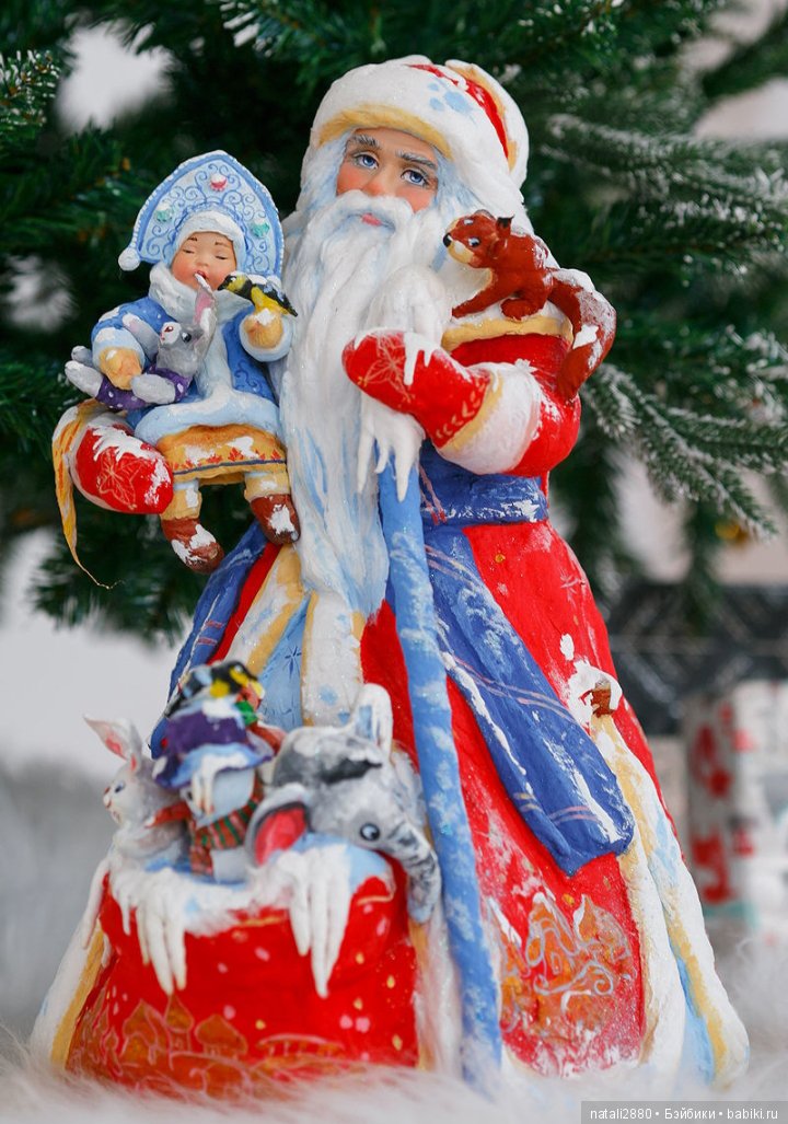 Игрушки сделаны по старинной технологии — из ваты и крахмального клейстера.На мой взгляд, это самая шикарная работа этого мастера, прекрасная и сложная роспись, наряд героев продуман и проработан до самых мельчайших деталей.