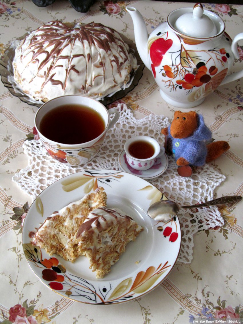 Люку вот кусочек тортика от Патрика, он помогал готовить (наш Патрик и дома на все пуговки застёгнутый, мерзлявый ;) )