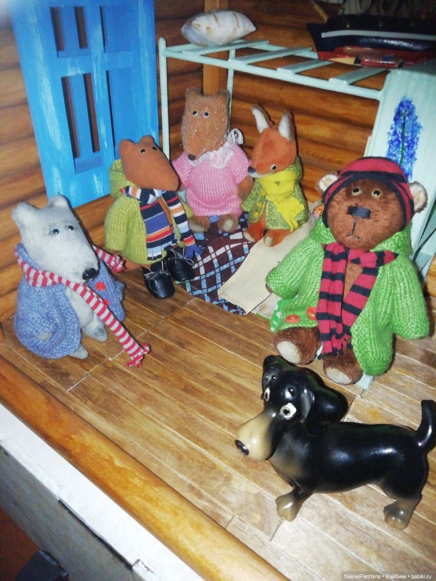 Дом для малышни был готов очень давно.Сначала в планах было поселить только лисика и енотика.А получилось, как в рукавичке))
