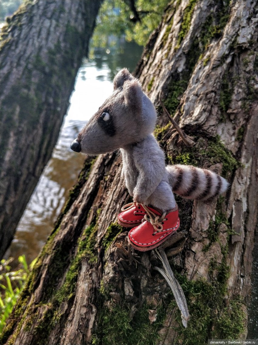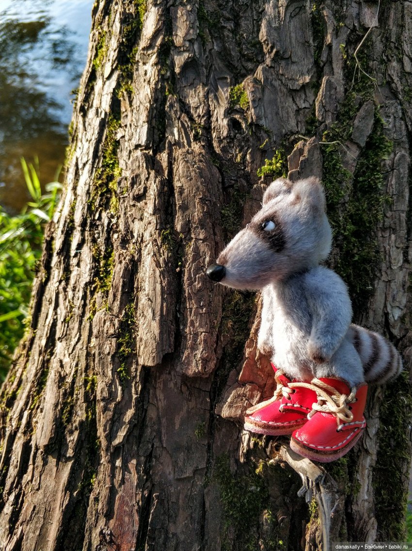 Последний день лета выдался тёплым, ласковым, наполненным тем волшебным светом, который бывает только в конце августа и начале сентября. Дел у нас было много. Переговорить с водяными, поболтать с русалками, выслушать жалобы лешего, передать весточку бабушке Яге в Абрамцево. Необходимо было обсудить маршрут со знакомыми утками, чтобы они не сбились с курса. По пути к Дремучей Иве мы встретили Енота по имени Зорро от замечательного мастера Татьяны Величко ( tatiana58 ). Сначала он держался крайне независимо.