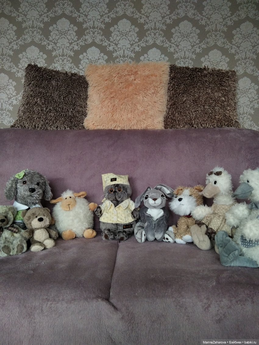 Я очень люблю кукол. Их у меня много. Но и мягкие игрушки я тоже люблю. Их не так много, всё же по сравнению с куклами я их очень редко покупаю. Но они есть. И что интересно, мягкие игрушки тоже могут влиять на пополнение коллекции. Кто-то хочет себе пару. А я люблю, чтобы были и девочка, и мальчик. Кто-то желает обзавестись другом. С активным коллекционированием кукол я закончила (надеюсь), кукол буду очень редко покупать, т.к. ещё не всех купила из своего Вишлиста. Но у меня на днях сформировался новый Вишлист — с мягкими игрушками! А ведь свободных денег и главное свободного пространства у меня уже нет. А пока решила собрать в один топик (не всех, а про кого были отдельные топики и нашлись фото) свои мягкие игрушки.