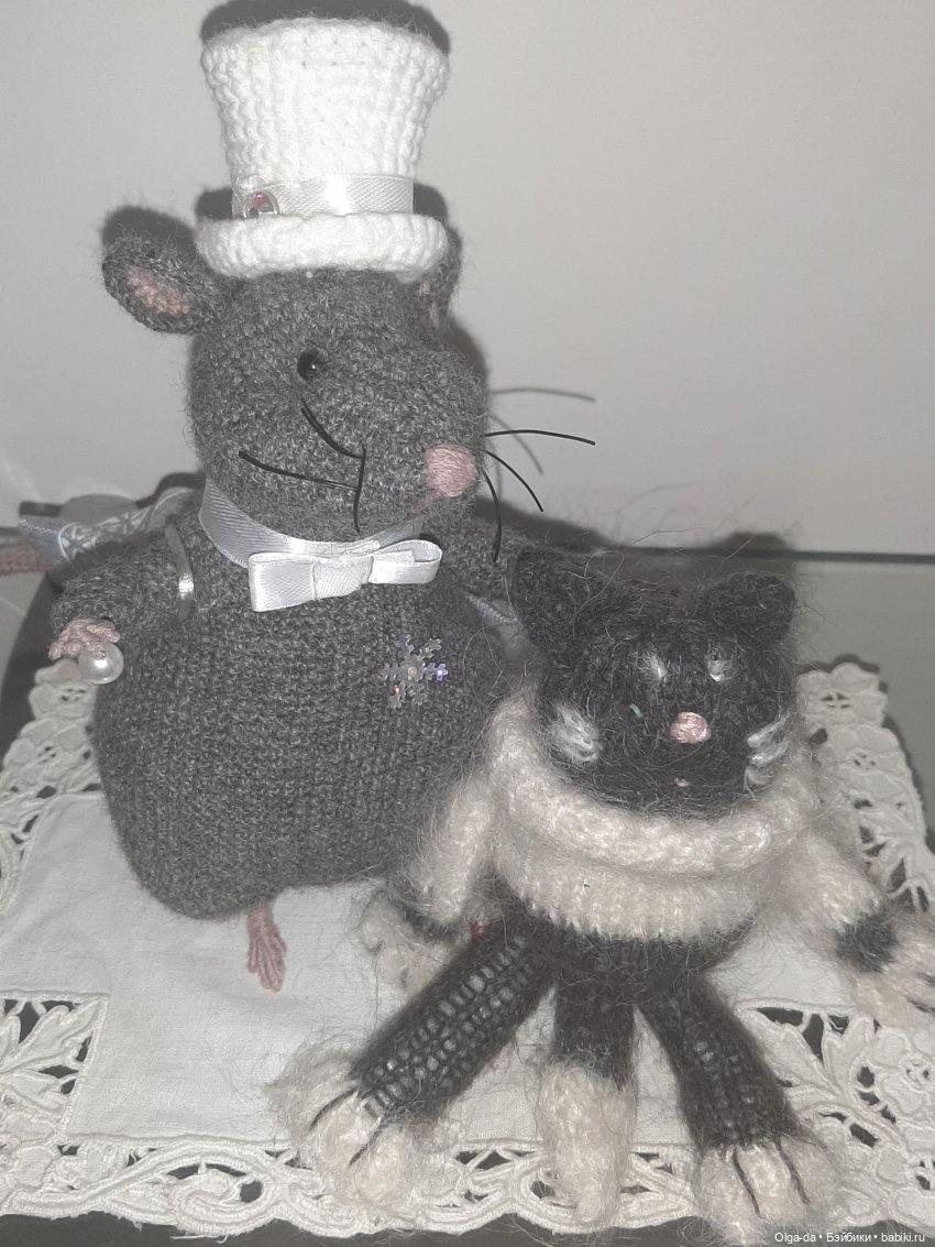 Я люблю вязать разные игрушки — и крючком, и спицами. Но чтобы быть в одной теме с Вашей кошечкой, приведу в гости нескольких тоже связанных крючком: