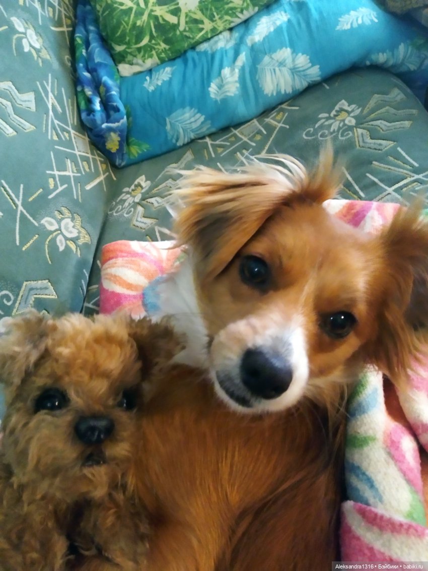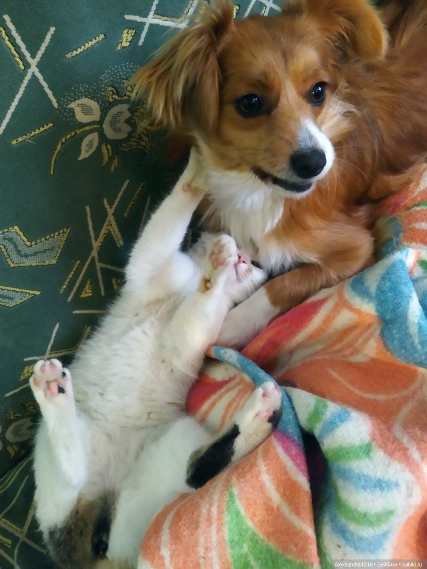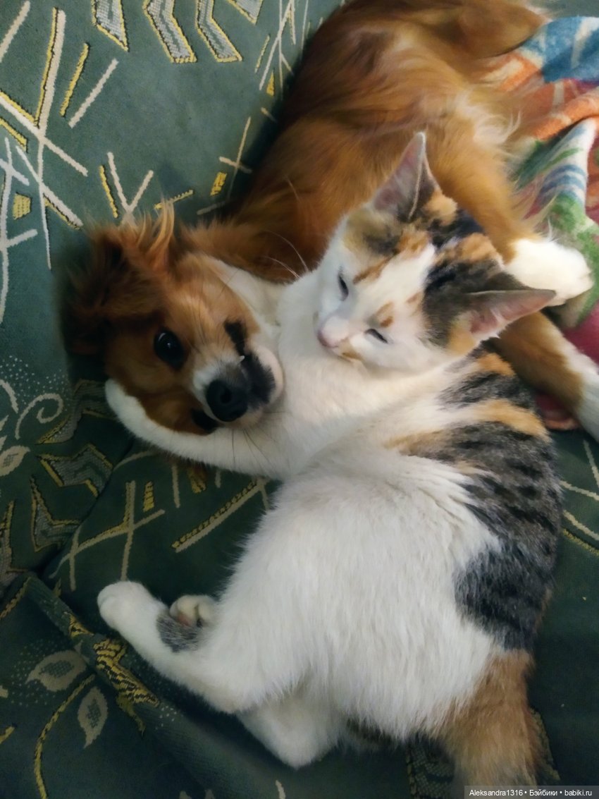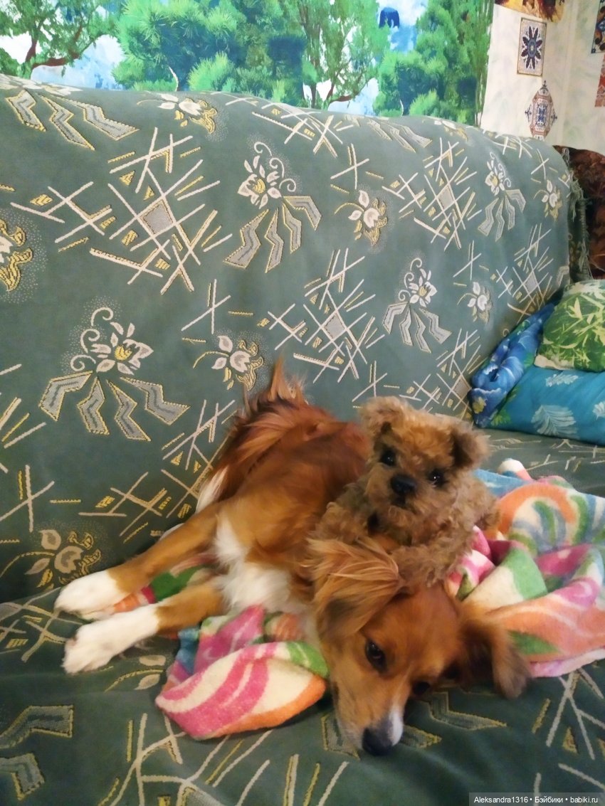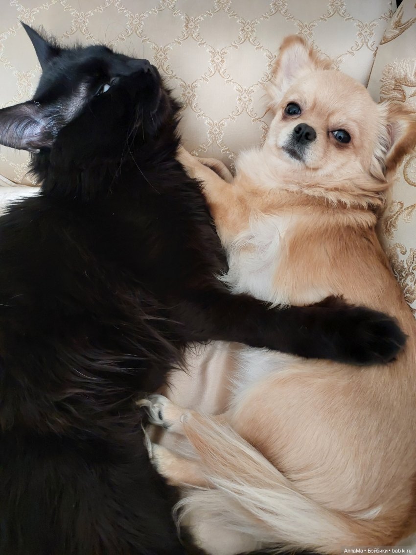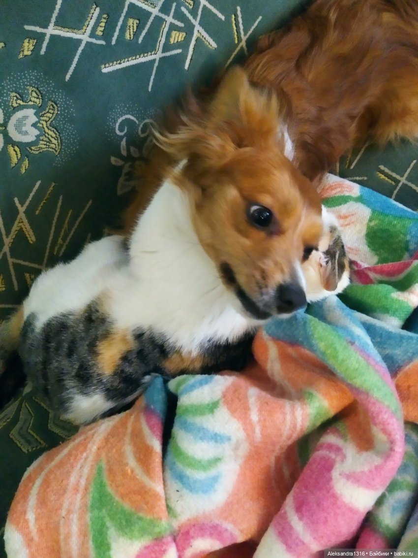 У Мани много терпения и любви и она всем хочет быть мамой🤗… маленькая она донимала нашего колли Даню, играла в его гриве, спала с ним, покоя ему не давала и он все терпел-пример спокойствия и великодушия!