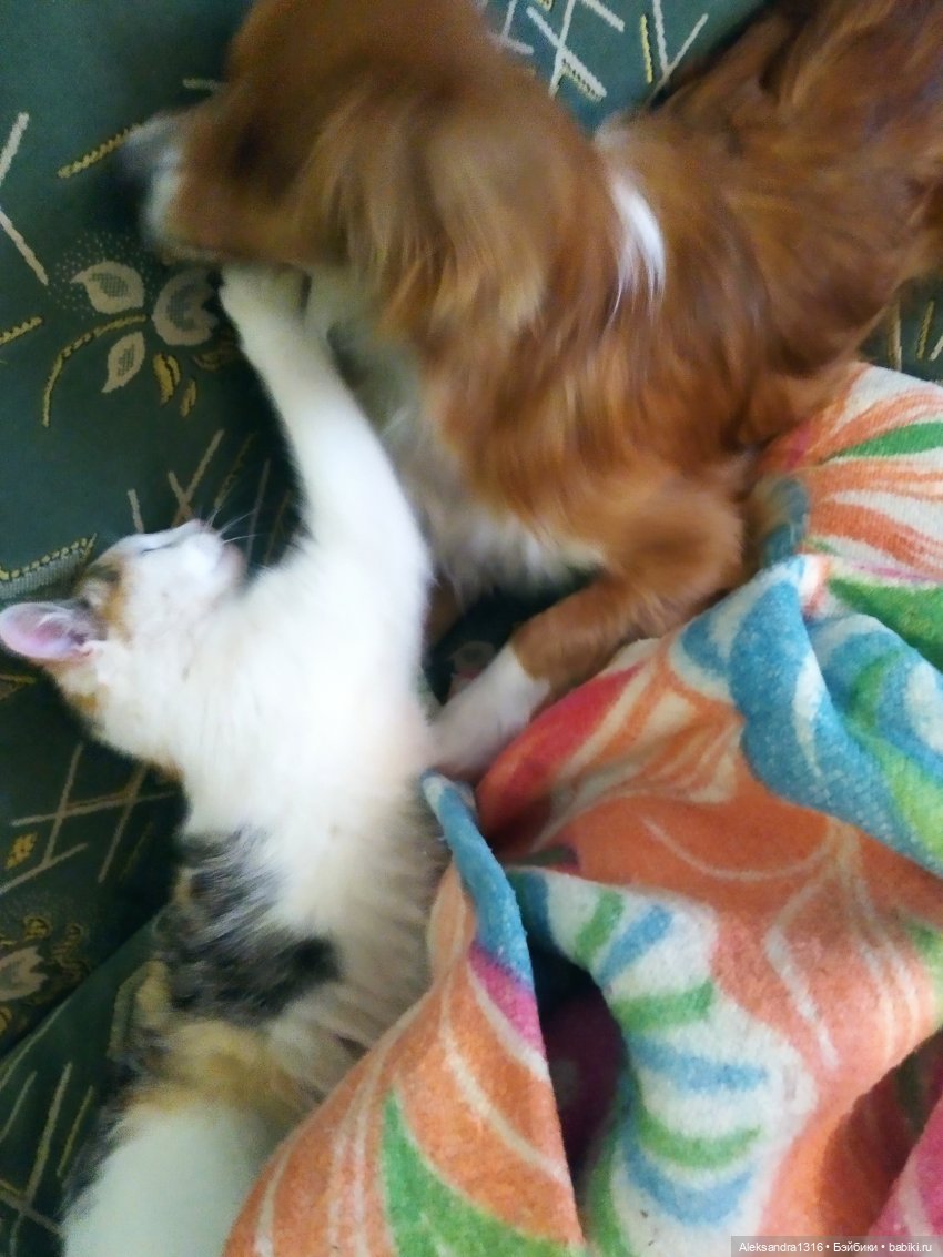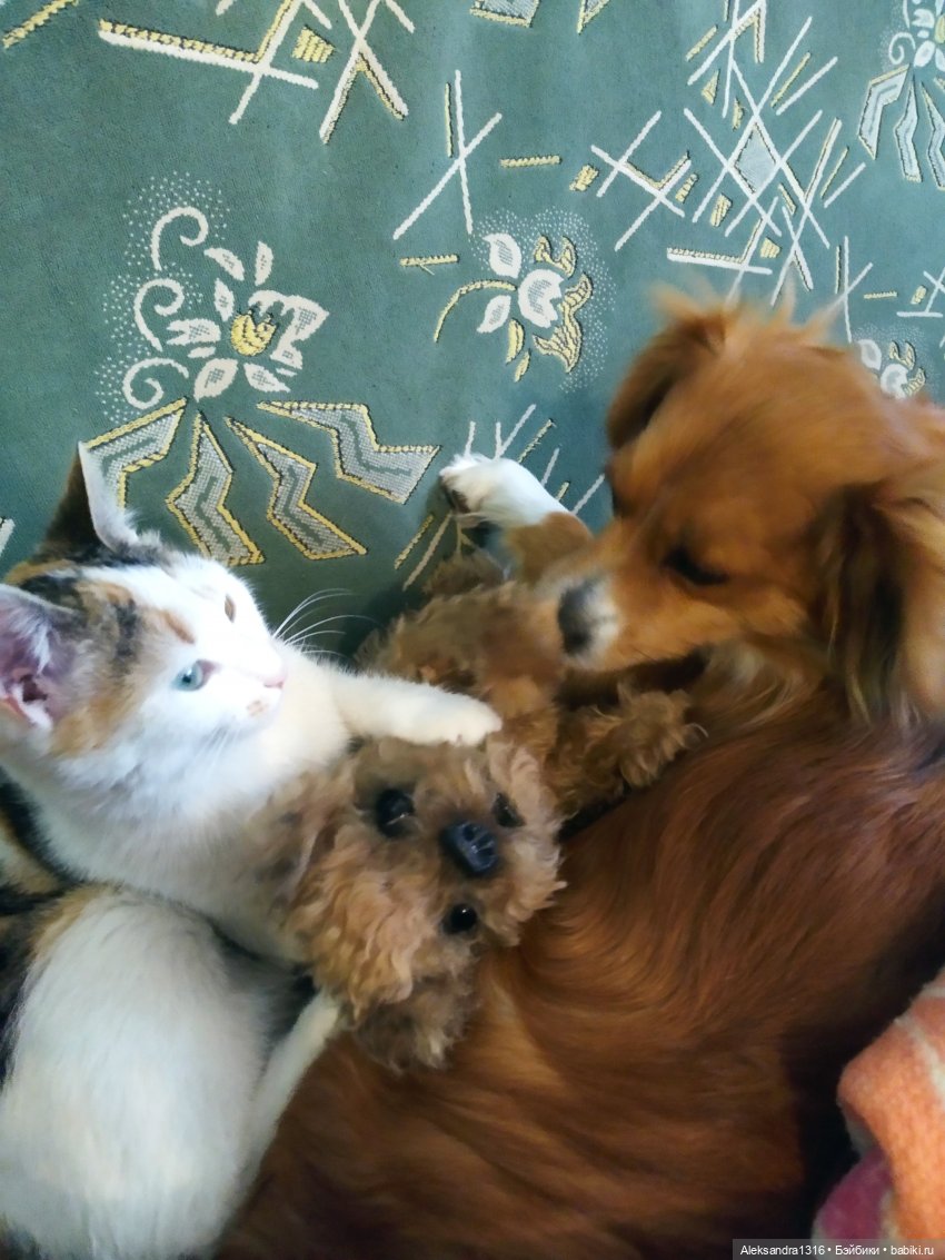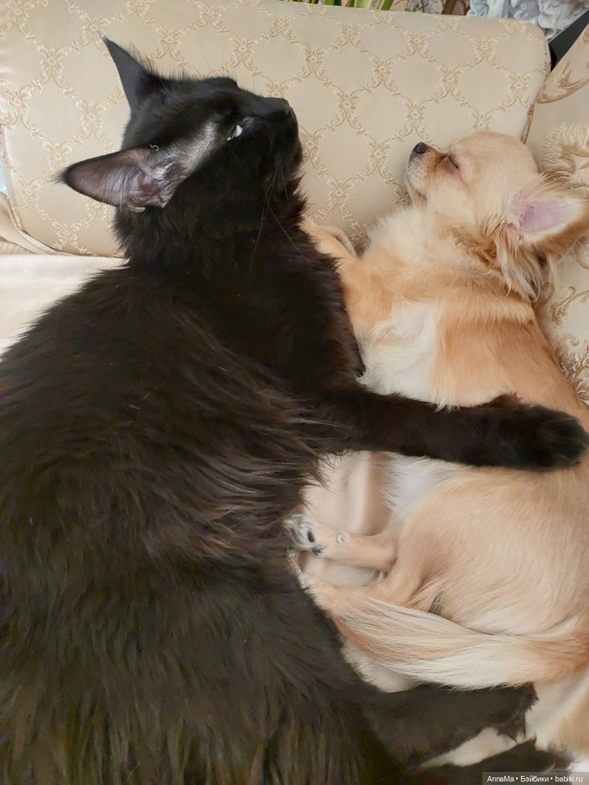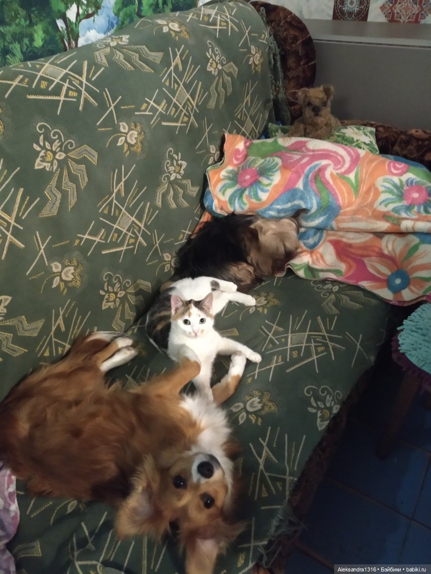 А тут Тимошка подоспел — и откуда? и сразу ее донимать🙃-она и его решила усыновить, а что, одним ребенком больше, одним меньше-такие дела… у Мани большое сердце, а еще она любит поспать на диване на кухне, так она создает мне уют и помогает готовить- полюбуйтесь))… фото с телефона, только успевала ловить кадры, простите за качество! Эти кадры специально не сделаешь)