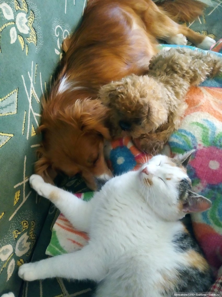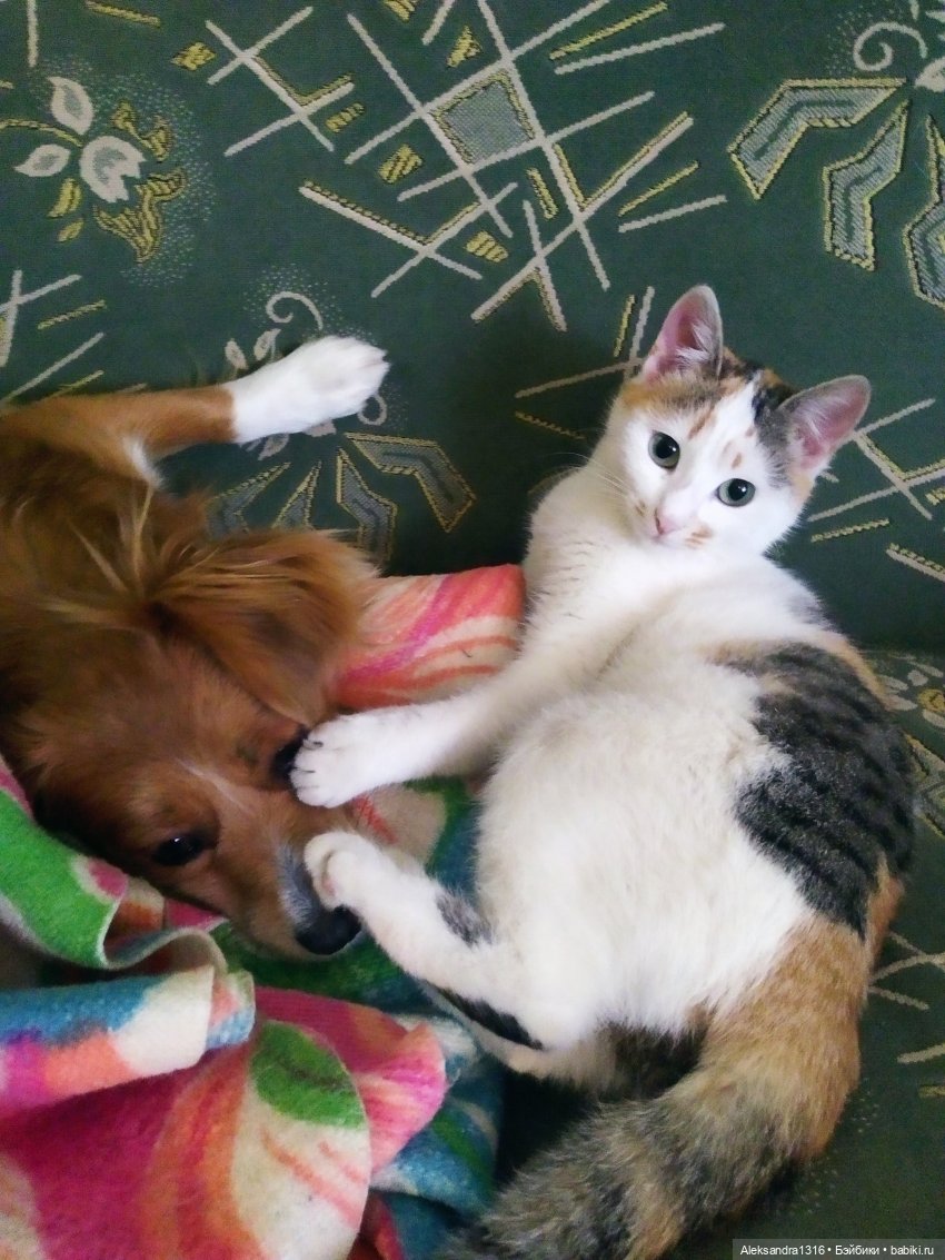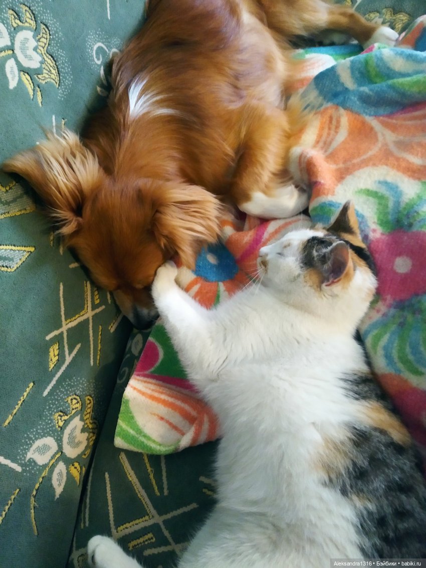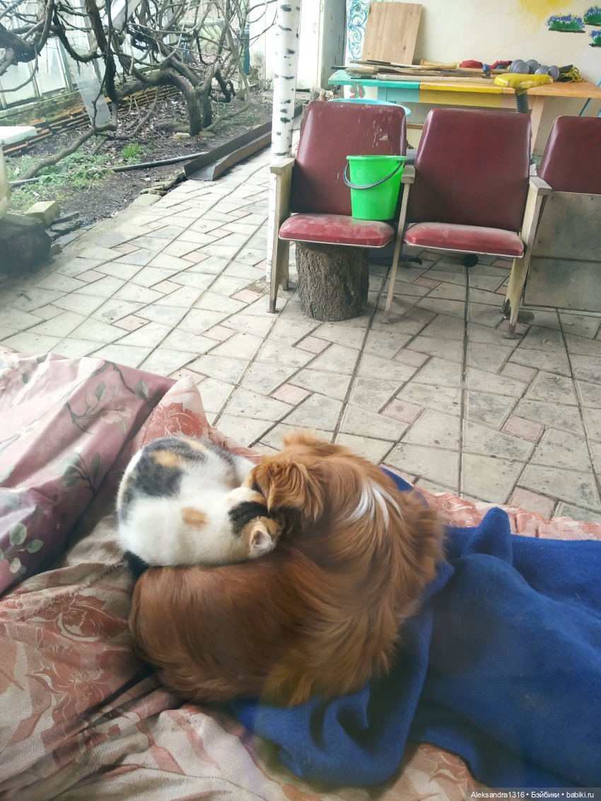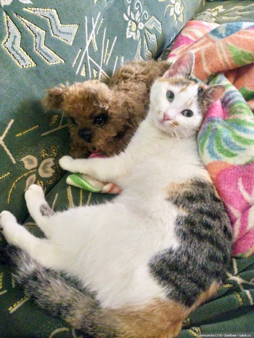 А тут Тимошка подоспел — и откуда? и сразу ее донимать🙃-она и его решила усыновить, а что, одним ребенком больше, одним меньше-такие дела… у Мани большое сердце, а еще она любит поспать на диване на кухне, так она создает мне уют и помогает готовить- полюбуйтесь))… фото с телефона, только успевала ловить кадры, простите за качество! Эти кадры специально не сделаешь)