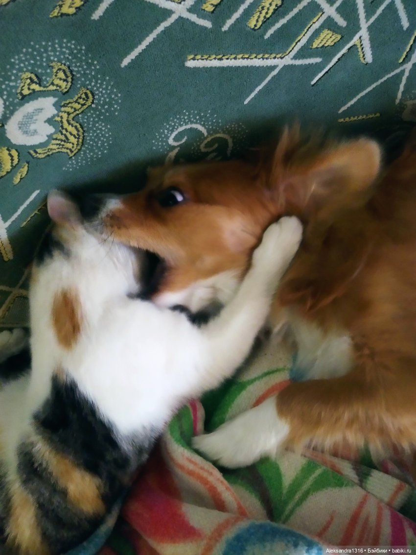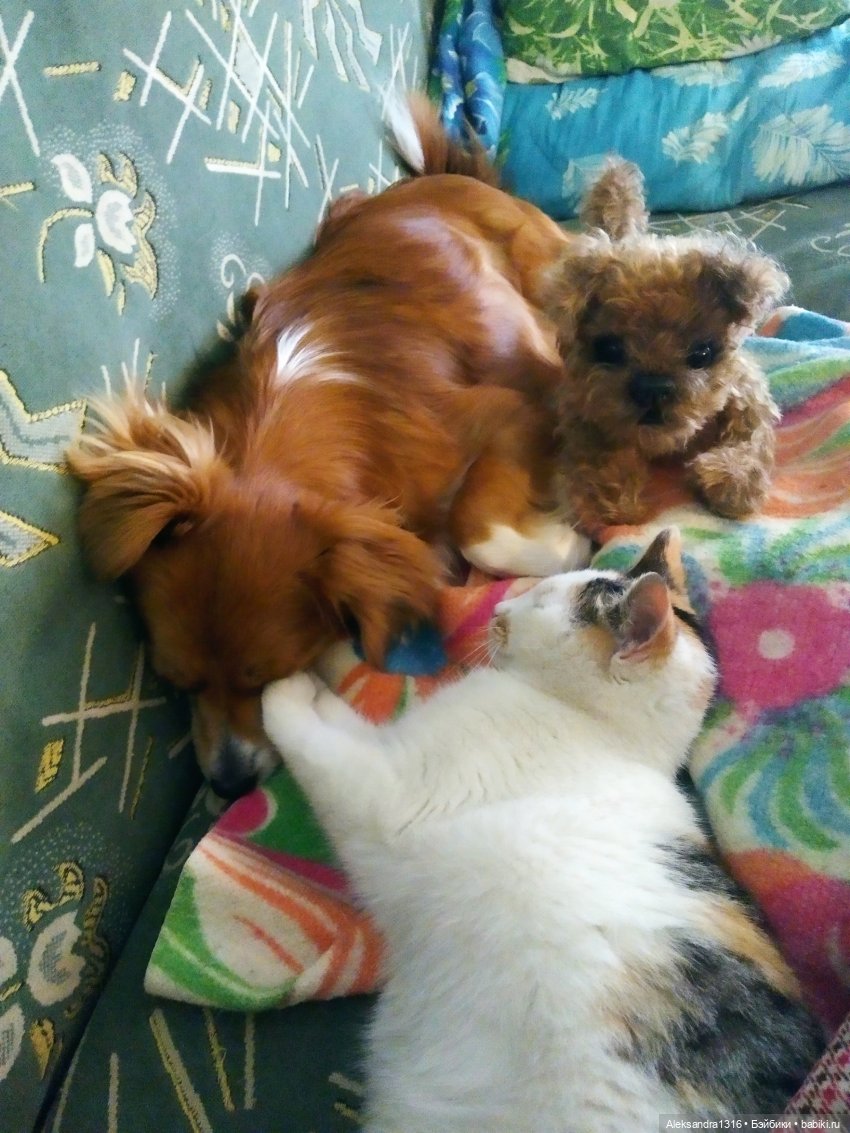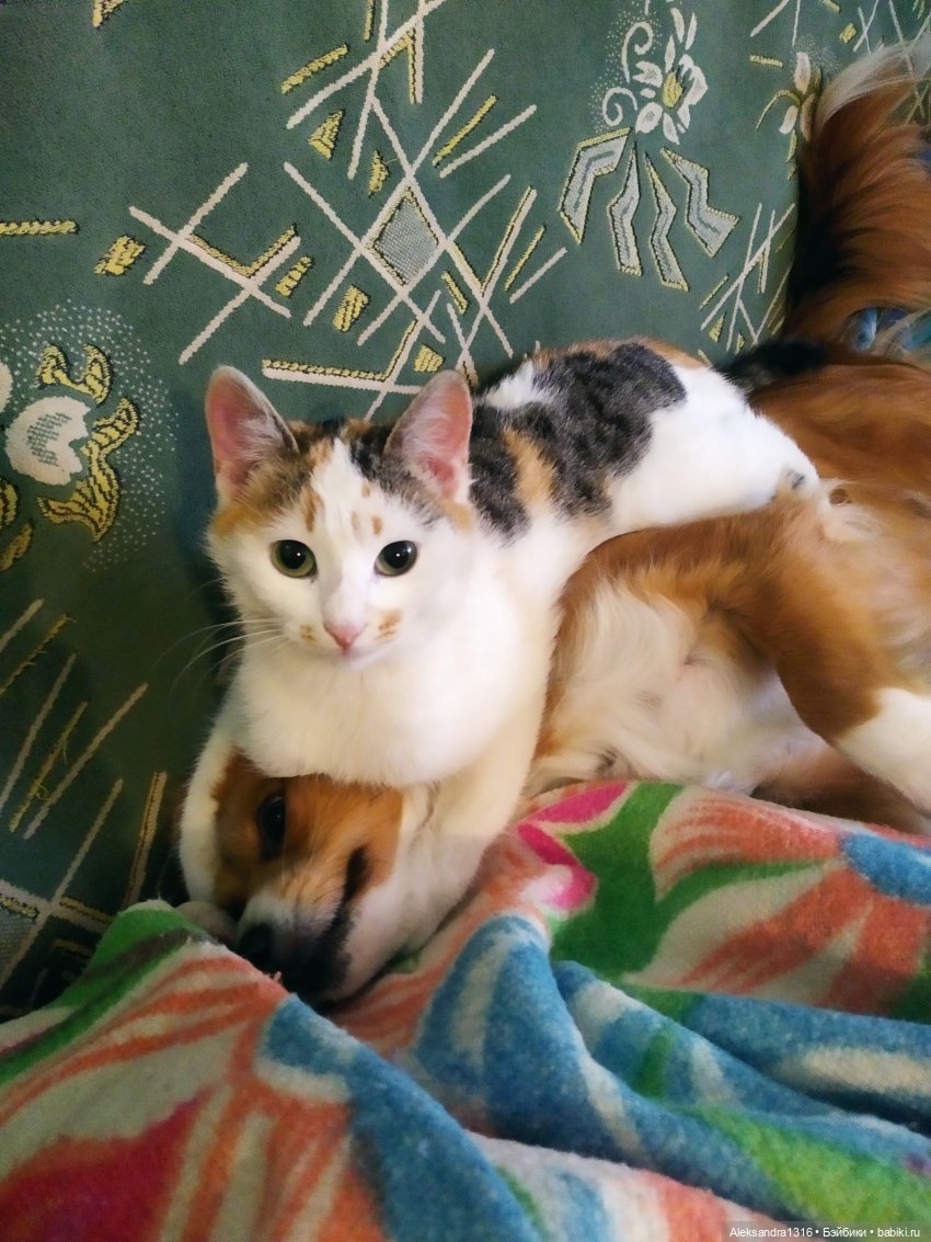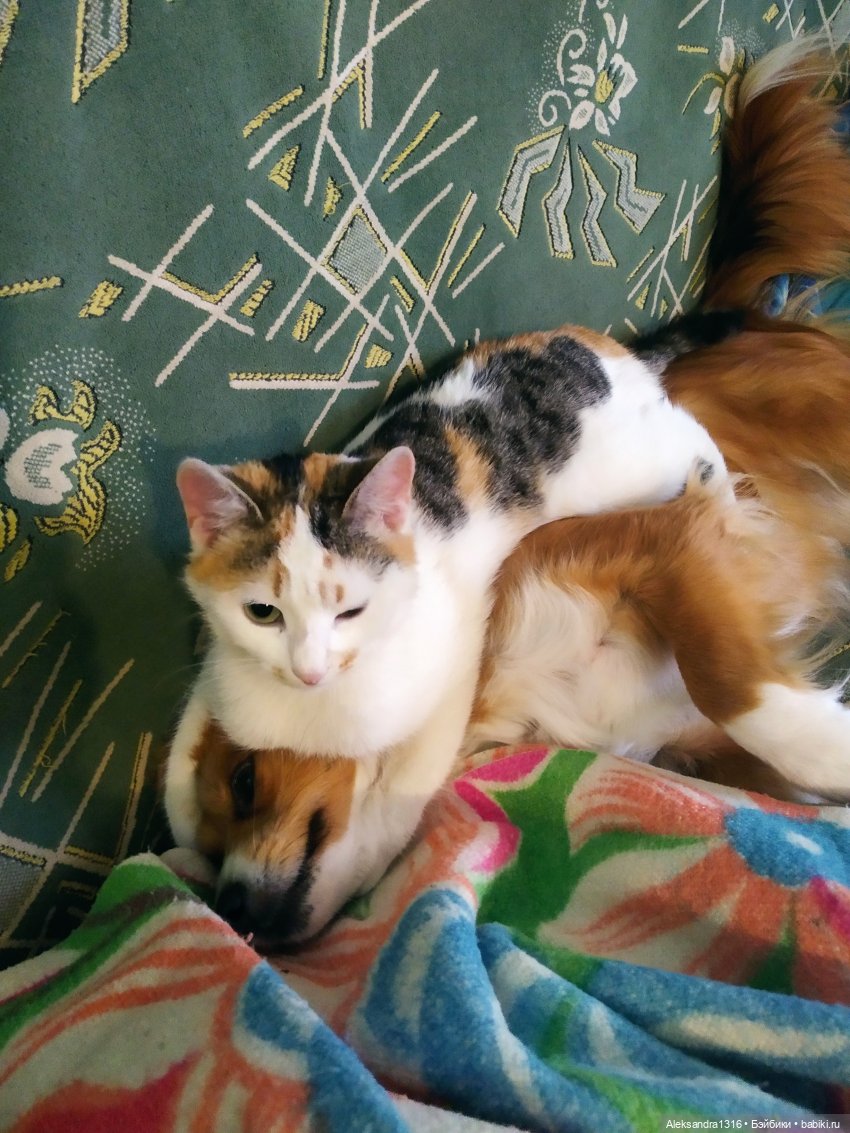 А тут Тимошка подоспел — и откуда? и сразу ее донимать🙃-она и его решила усыновить, а что, одним ребенком больше, одним меньше-такие дела… у Мани большое сердце, а еще она любит поспать на диване на кухне, так она создает мне уют и помогает готовить- полюбуйтесь))… фото с телефона, только успевала ловить кадры, простите за качество! Эти кадры специально не сделаешь)