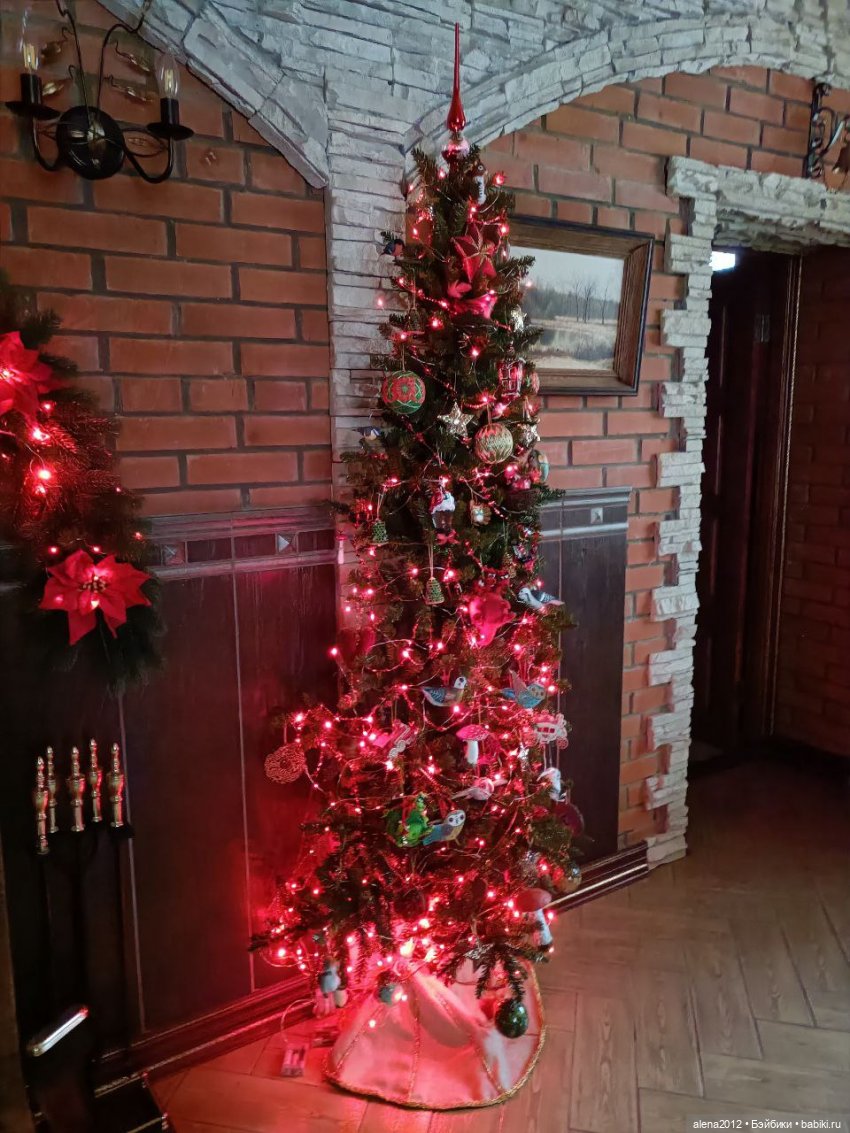 В американских домах видела по 3 -4 ёлки в одном помещении. Но и эту полу-ёлку с трудом вместили.