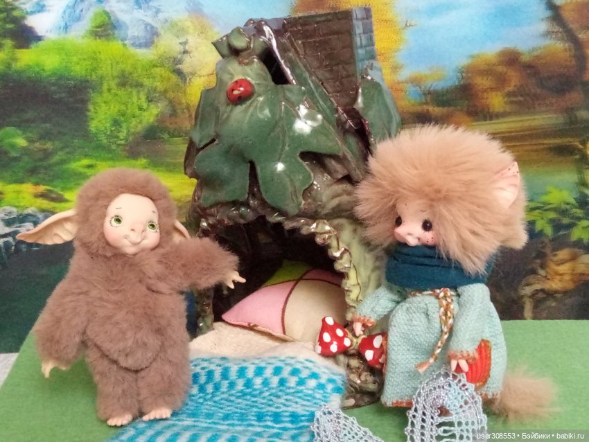Всем, здравствуйте! Поселилась у меня семейка от Натальи: смешной троллик и две Ауки. Обосновались в румбоксе, обживаются потихонечку:)))