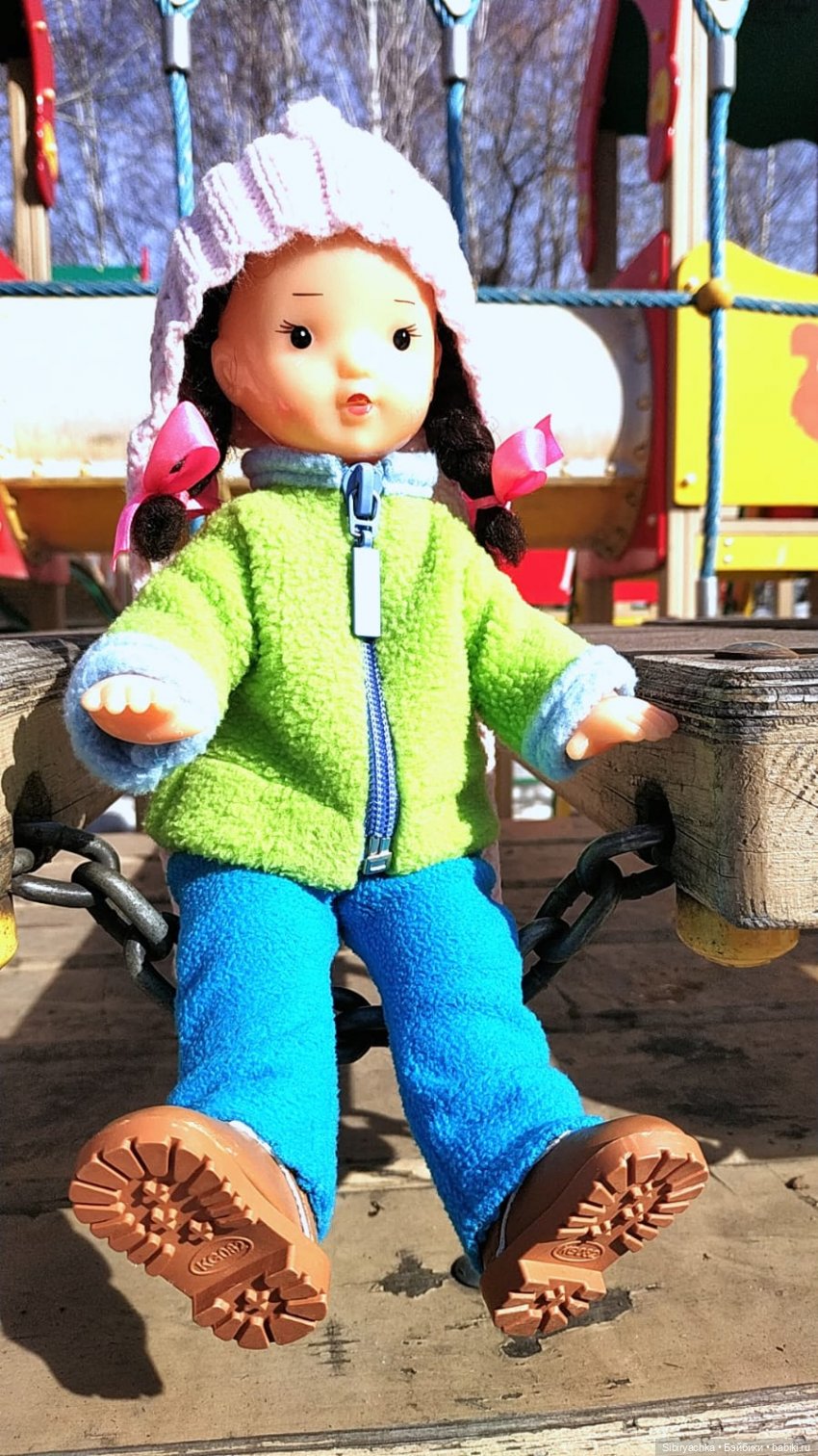 Сегодня у нас светит солнце, на улице тепло. Я ходила гулять в спортивном костюме без куртки. Цветут деревья, цветочки, много зелени. После зимы радуется глаз обилию ярких цветов и солнышку! На прогулку взяла Алину текстильную куколку, маленькую текстильную авторскую куклу Милу, зайку Лимончика и Печеньку.