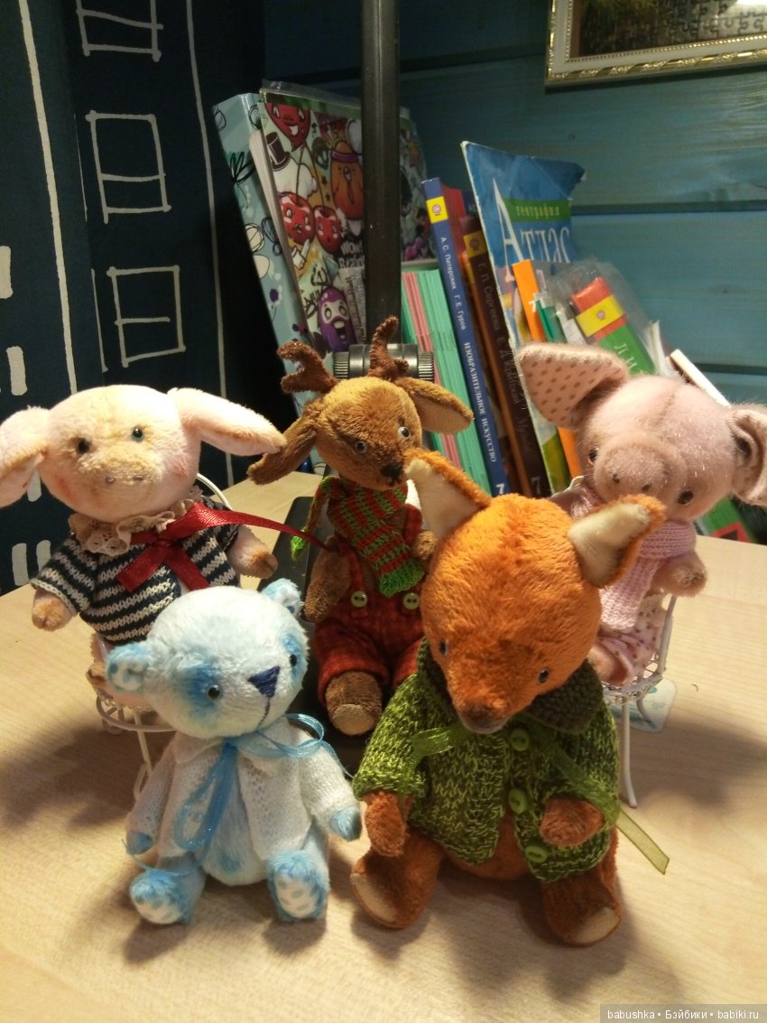 У меня живу Ирочкины малыши: и Лисенок, и медвежонок, и поросята, и оленик! Они прекрасны.