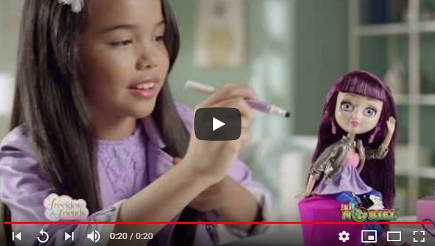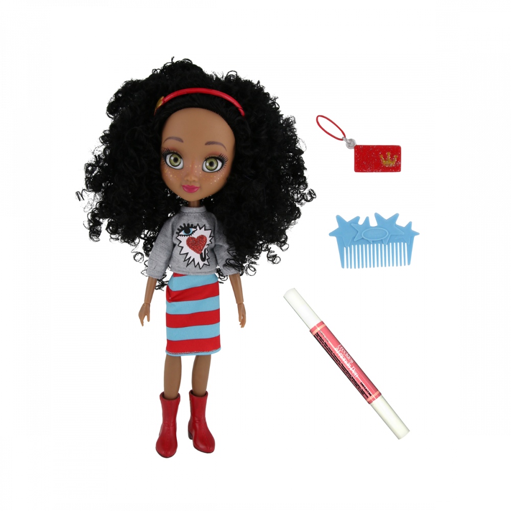 Рекламный текст от имени куклы:«У меня есть специальный карандаш, чтобы вы могли рисовать и татуировать веснушки и звезды на моем лице.»