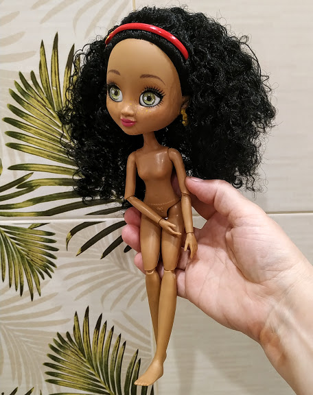 Голова у куклы прокрашена, грива большая, с упругими колечками волос. Не такая частая прошивка, но тут больше и не надо. Прическа, завязан хвостик в центре, не стала распускать.