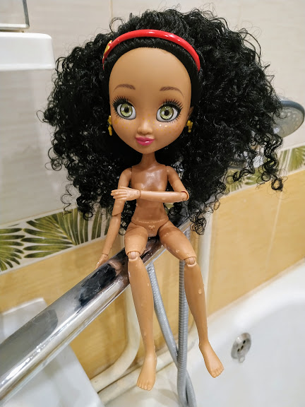 Покажу сначала более поздние фото, в ванной, где шарниры у Лулы раскрутились после теплой воды.