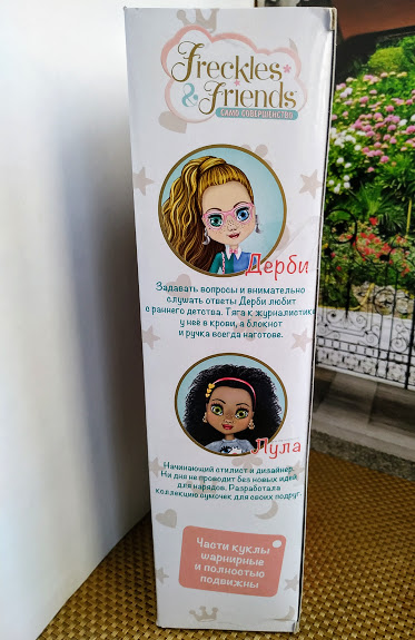Еще на выставке «Мир Детства» 2018 заинтересовали меня шарнирные куклы 27см Веснушки-подружки, Freckles&Friends. Продает в России компания Март, производство китайское, сертификат российский есть, указано на коробке.
