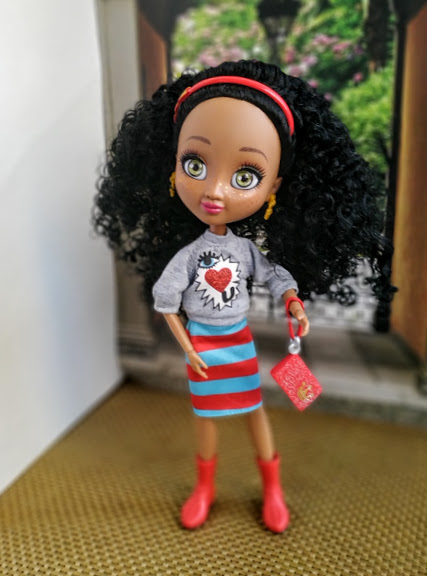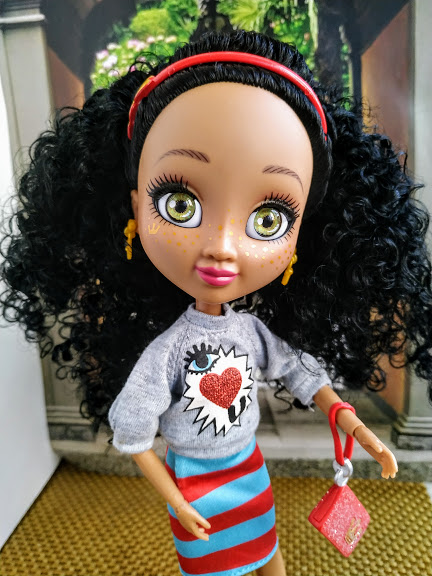 У Лулы вместе с веснушками нарисована корона, она повторяется и в сережках, которые приклеены. И на сумке красной тоже корона.
