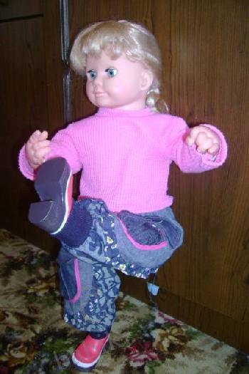 Наверное на Ксюшу подходит одежда от настоящего ребенка? или она сильно худенькая?