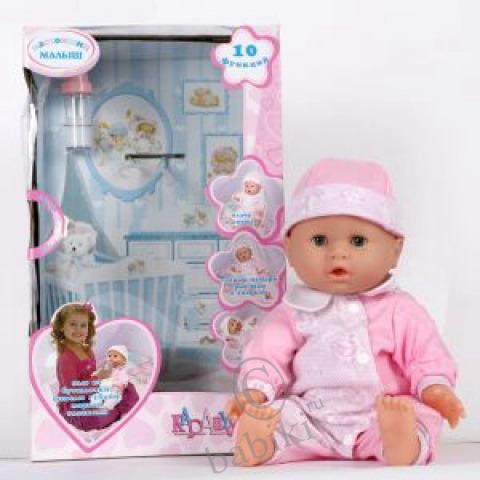 Пупс с 7 функциями и 5 аксессуарами. «открывает глазки» «закрывает глазки» «говорит „мамам“» «говорит „папа“» «сопит во сне» «смеется» «плачет»(30 см.)