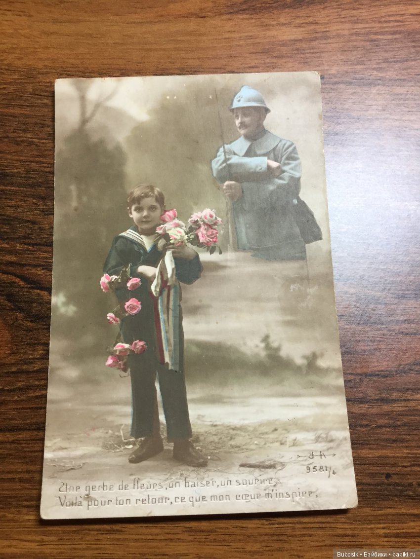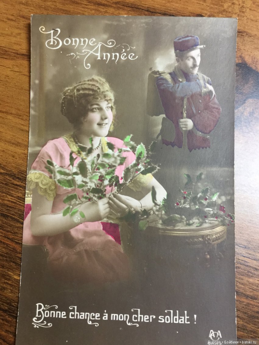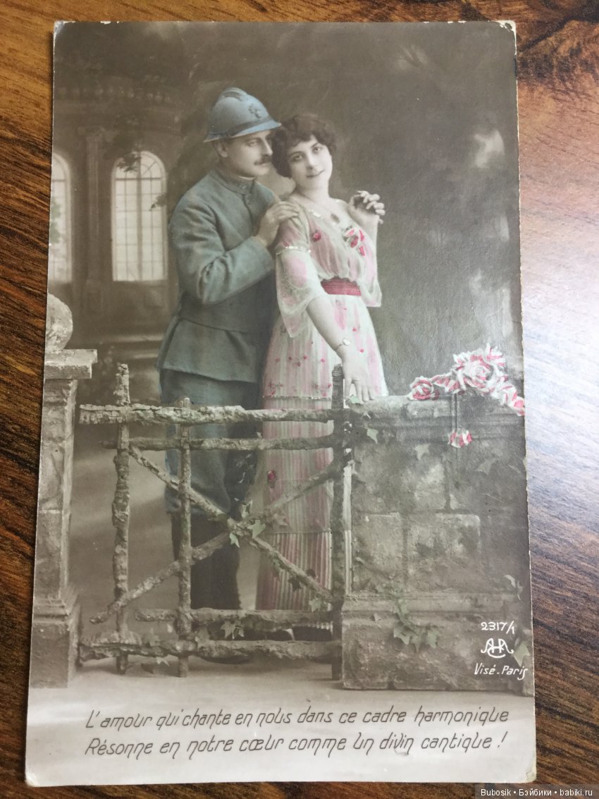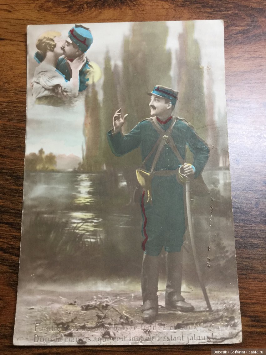 А вот с открытками сложно как-то. Нравятся -да, но не очень принимаю чужие фото. Хотя в данном случае выглядят уже не как фото, а как открытки. Позабавил военный, мечтающий о поцелуе с любимой. Не знаю, что там написано, но поняла именно так. Вот ведь и без фотошопа, наверное, делали такие картинки!