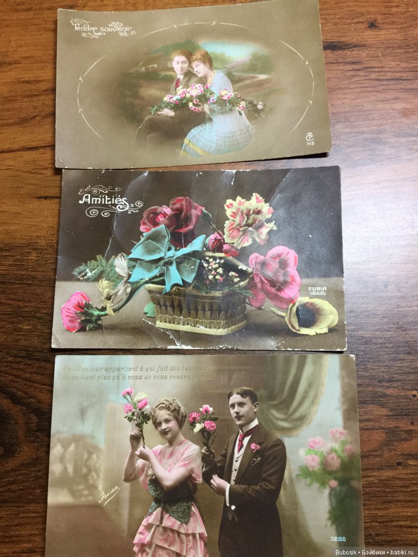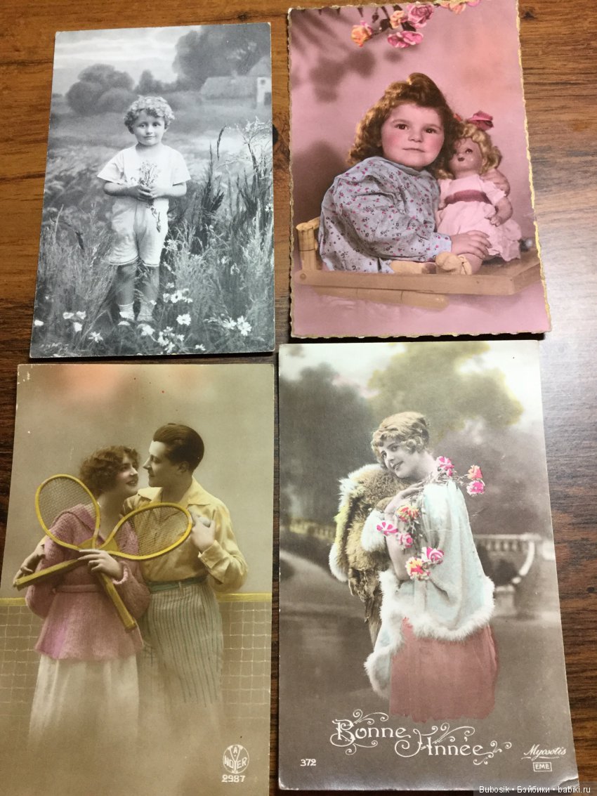 А вот открытки сама не знаю, зачем купила, я не собираю ни открытки, ни чужие фото :) порыв души, можно сказать. Открытки датированы 1904- 1919 годами, есть с военной тематикой, с куклами, просто детьми, влюбленными парами, цветами и даже с воблой:) Открытки сложены в чудесную коробочку, которая меня, видимо, и поманила:))