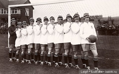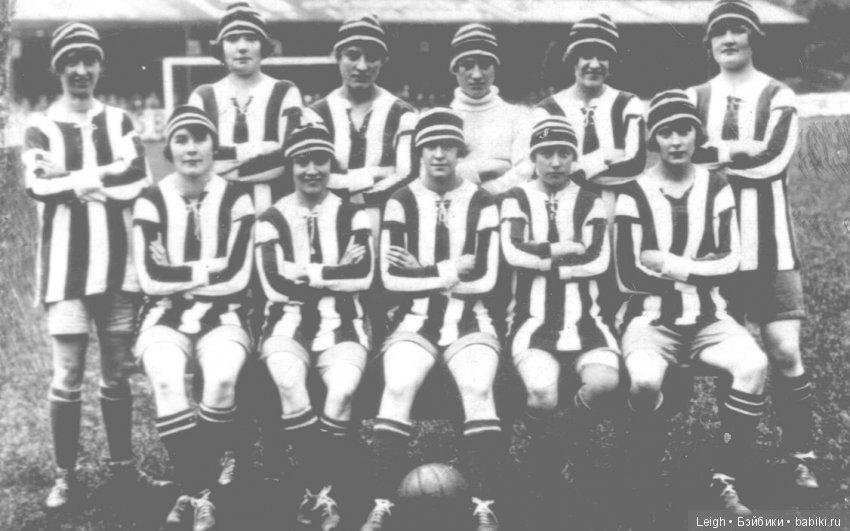 К слову — вот 1920 женская футбольная команда Англии) Собирали трибуны до 60 тысяч зрителей и все деньги отдавали на благотворительность — последствия Первой Мировой, на поддержку бастуюшим шахтерам, — в обшем не в руки мужиков владельцев футбольной Ассоциации. Те запретили им играть на их стадионах — ведь если нет наживы, — нет и женского футбола. Те играли в парках, где придется, очень классово-ориентированные на бедных и рабочих — их прозвали большевичками и реально проклинали мужики у власти) В общем. интересная история.
