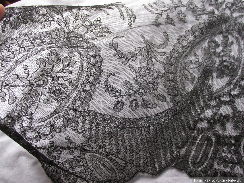 Блонды — обязательно с плотным глухим рисунком орнамента. Шантильи — прозрачные, рисунок выткан разным видом плетения нитей. И там, и там контурная обшивка. И там, и там — исполнение в светлом и чёрном варианте.