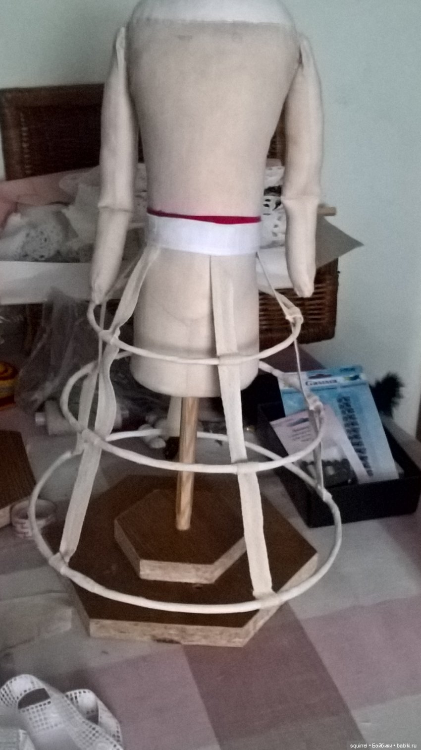 все это можно обмотать белой изолентой для красоты и прочности и тканью. Можно для страховки вставить ленточку или везинки по бокам, но на моем опыте-это надо только для тяжелых кукол.