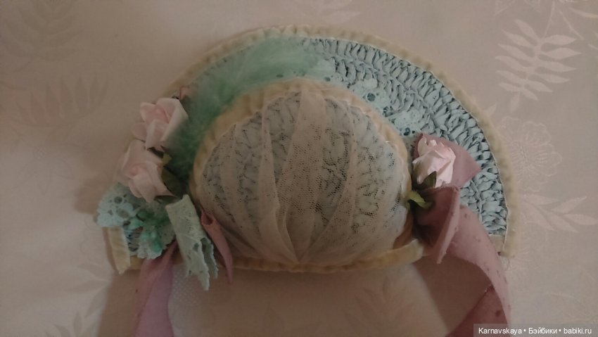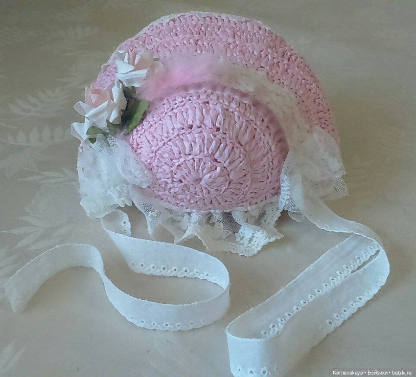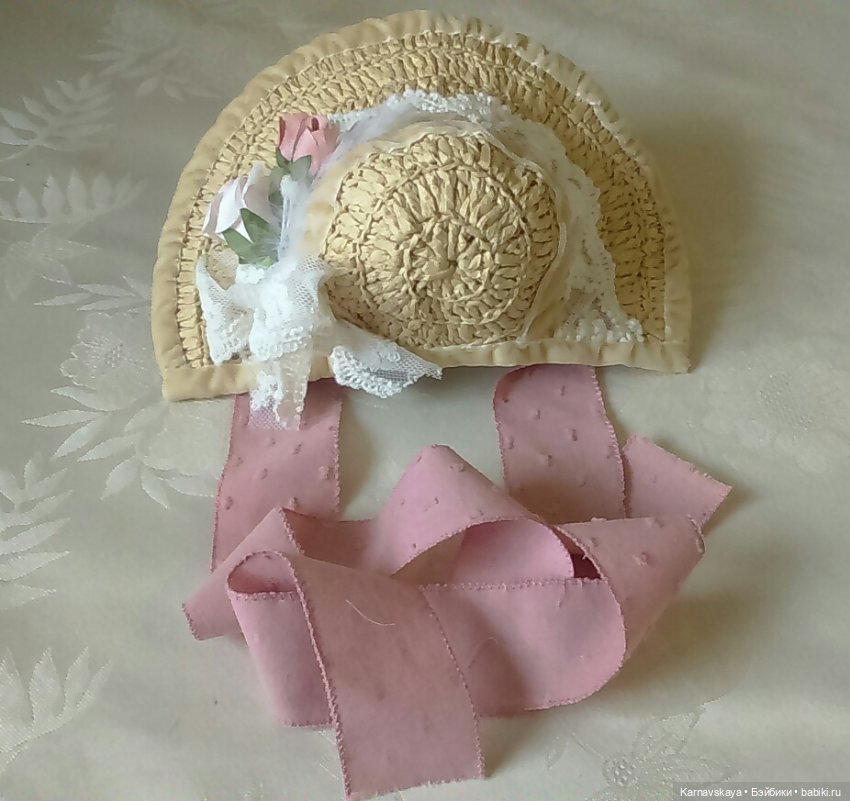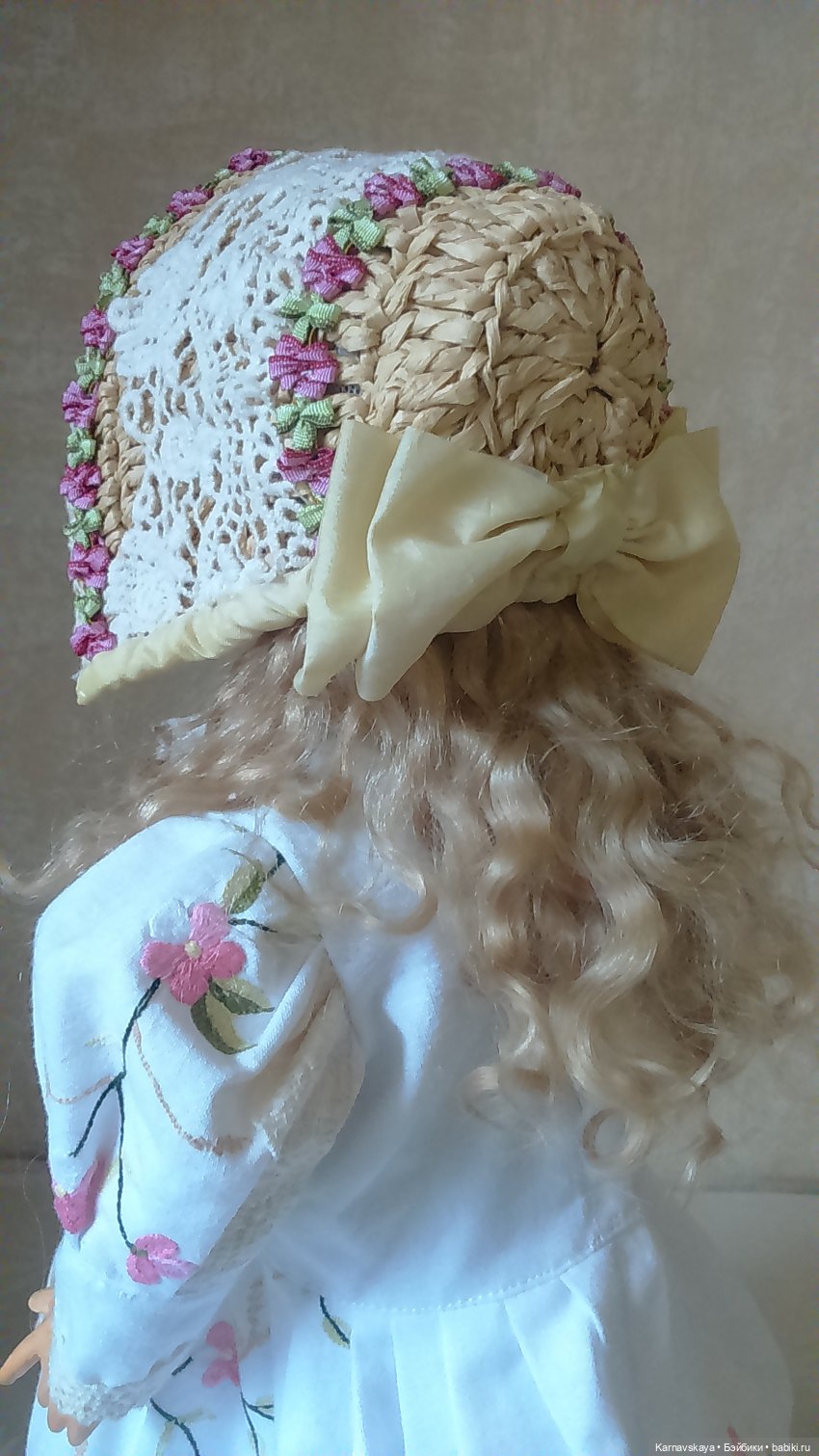 Всем доброго дня! Сегодня покажу свою новую работу и поделюсь идеей ее воплощения.Недавно заходила в ,, Леонардо˝за ниточками-булавочками и увидела в продаже очень на мой взгляд интересную пряжу для ручного вязания из целлюлозы(материал натуральный, и это радует), ну и конечно я не смогла пройти мимо, взяла на пробу пару моточков молочного и соломенного цветов, решив сделать шляпки куклам.Вообще выбор цветов был очень большой, на любой вкус.Внешне и на ощупь нить напоминает мягкую соломку, если ее расправить пальцами получается тонкая мягкая лента. Я вязала крючком номеров два и три, вообще с подбором крючка пришлось немного поиграть, с четвертым номером(рекомендация производителя) вязка получалась объемная и более плотная.И еще, пряжу из моточка соломенного цвета я размотала, распрямила до состояния ленты и аккуратно разрезала вдоль, края ленты при этом не лохматились, лента не рвалась и не путалась, получилить два мотка более тонкой пряжи (тонкая нить намного лучше подойдет для вязания шляпок для маленьких куколок).Из мотка молочного цвета у меня получилась одна шляпка на куклу ростом 55-70см.(на фото шляпки одеты на кукол этого роста), если вязать шляпу с более объемными полями или на более крупную куклу, соответственно нужно не менее двух мотков.Из мотка пряжи соломенного цвета (его я резала)вышли две шляпки на большую и совсем маленькую куколку (ее фото в самом конце).Связав заготовки шляпок, я прогладила их утюгом для для выравнивания форм (нагрев на хлопок).Я не смогу дать схему вязания, т.к.умею вязать очень давно и вяжу по наитию, но думаю, что проблем у хотя бы немного вяжущих не возникнет, да и в инете можно посмотреть схемы вязания шляп, но в любом случае начинать надо с затылка круговой вязкой столбиками с одним накидом.Про оформление шляпок говорить думаю не стоит, полет фантазии здесь безграничный)).